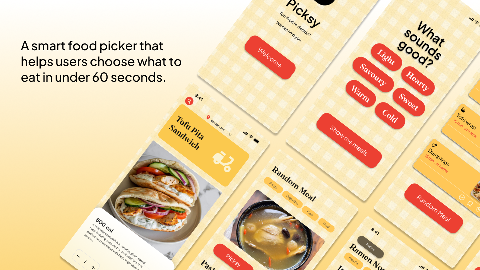 Picksy is a meal decision app designed for people who are too tired, hungry, or overwhelmed to figure out what to eat, and end up skipping meals entirely as a result.