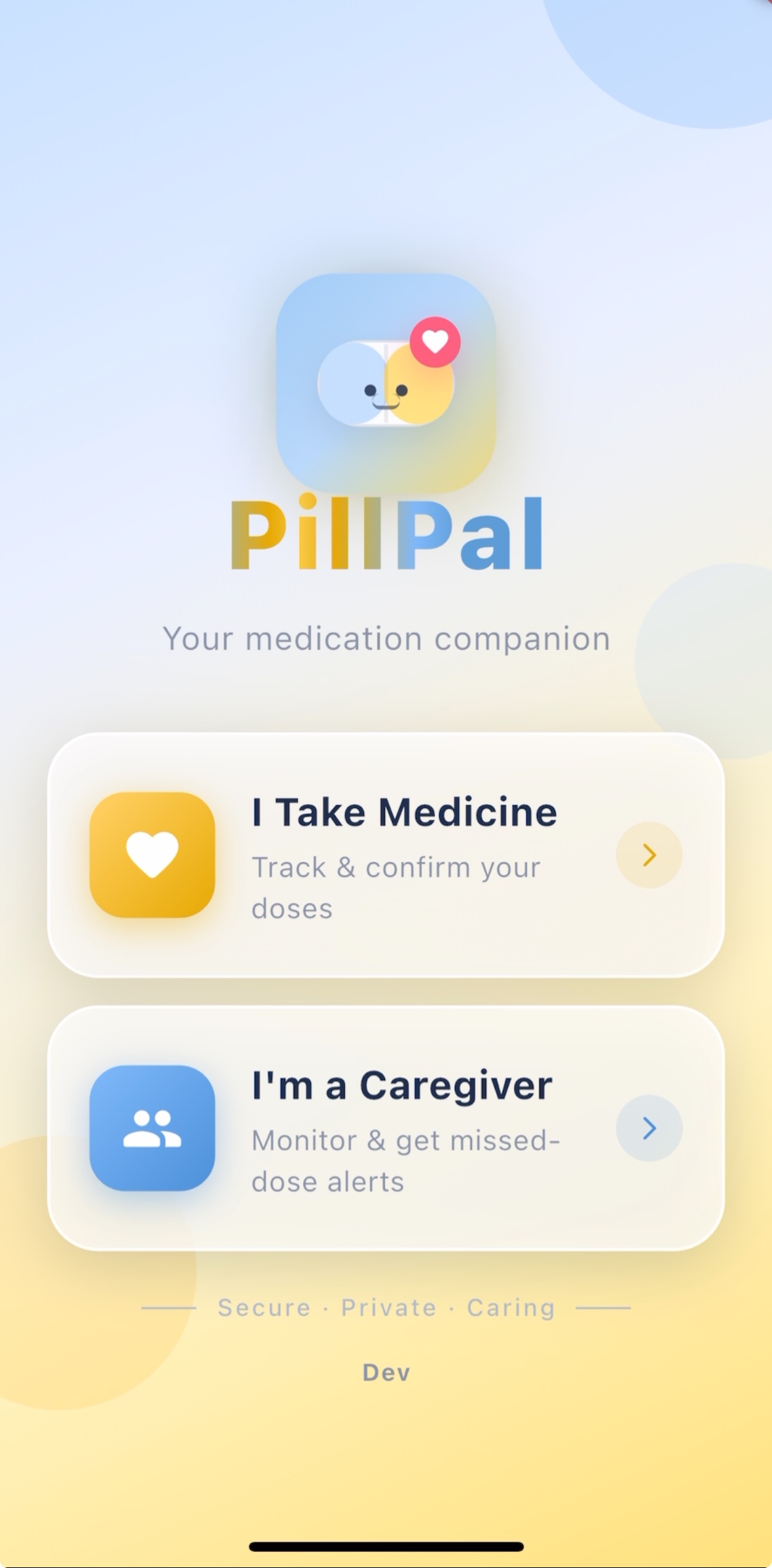 PillPal works for both independent users as well as containing features to connect with a caretaker.