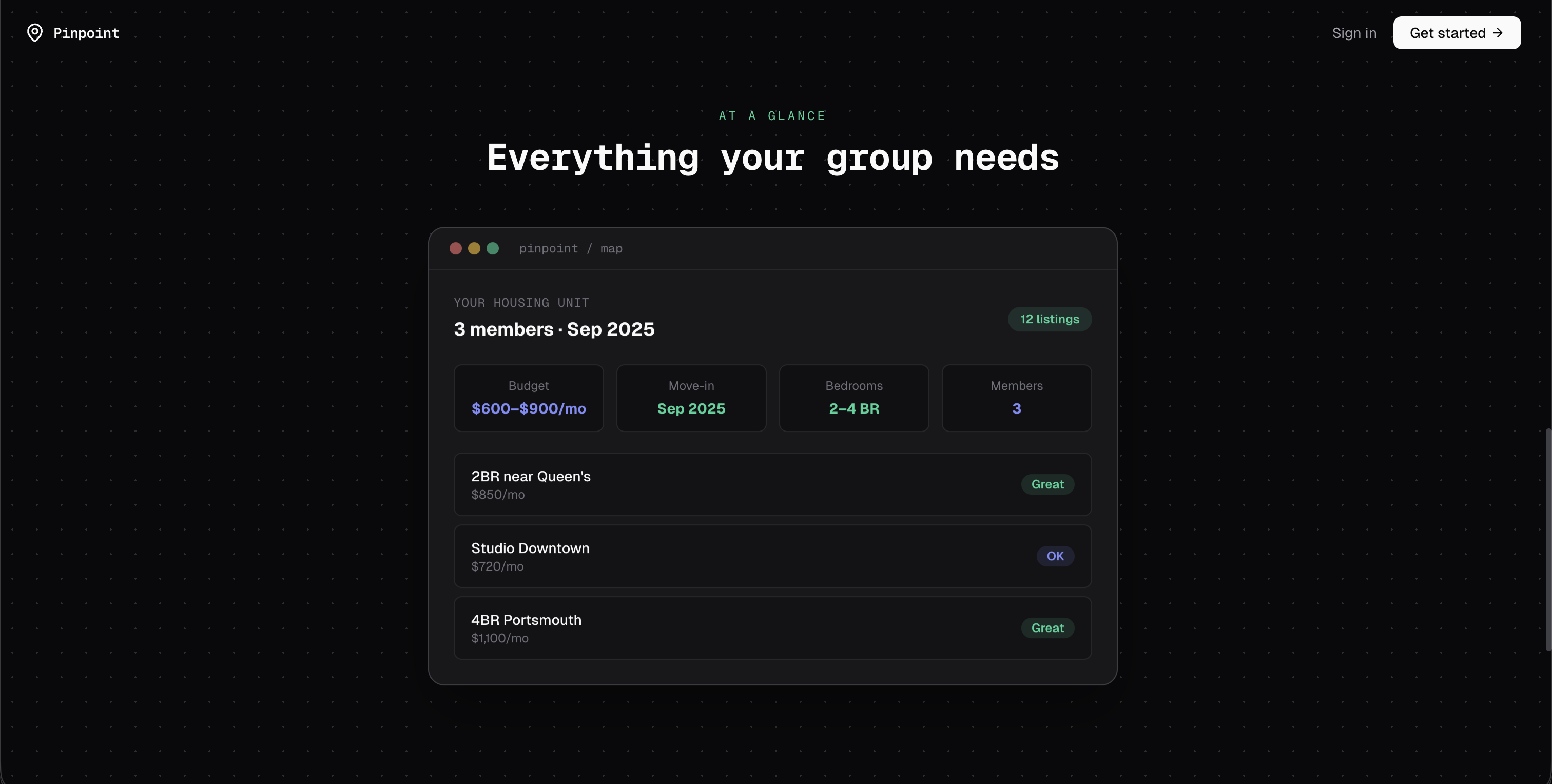 Pinpoint is a map-first housing platform where listings and people looking for roommates live together in one view.