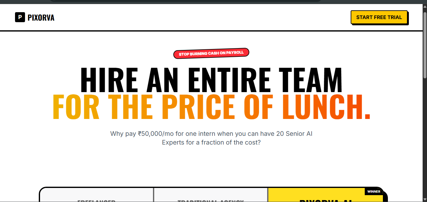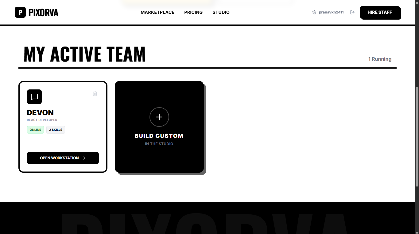 PIXORVA is a dedicated AI Employee Marketplace. Instead of generic chatbots, businesses can browse our directory to hire specialized, persona-driven AI agents — like "Devon the React Developer" or "Ruby the Backend Architect." Once a business subscribes to an AI employee (for example, at ₹999/month), that agent becomes a dedicated digital worker capable of executing specialized tasks, writing code, or managing workflows.