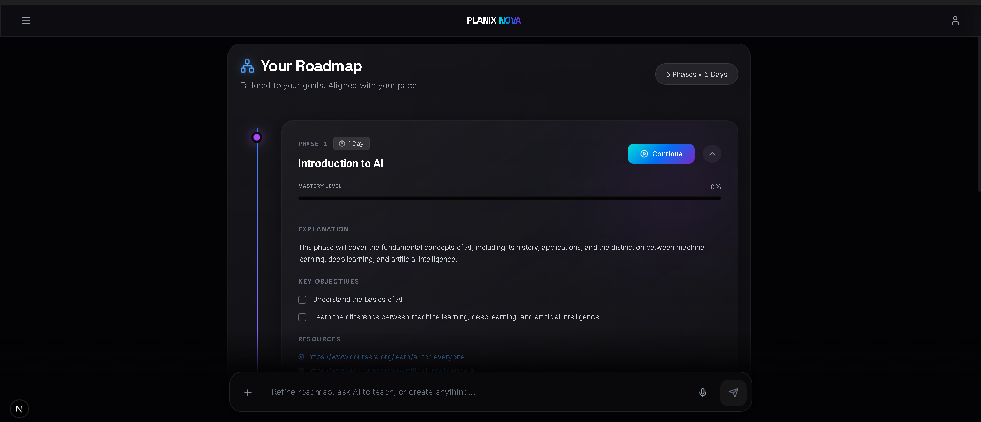 Our long-term vision is to evolve Planix Nova into a complete AI learning operating system for mastering any skill.