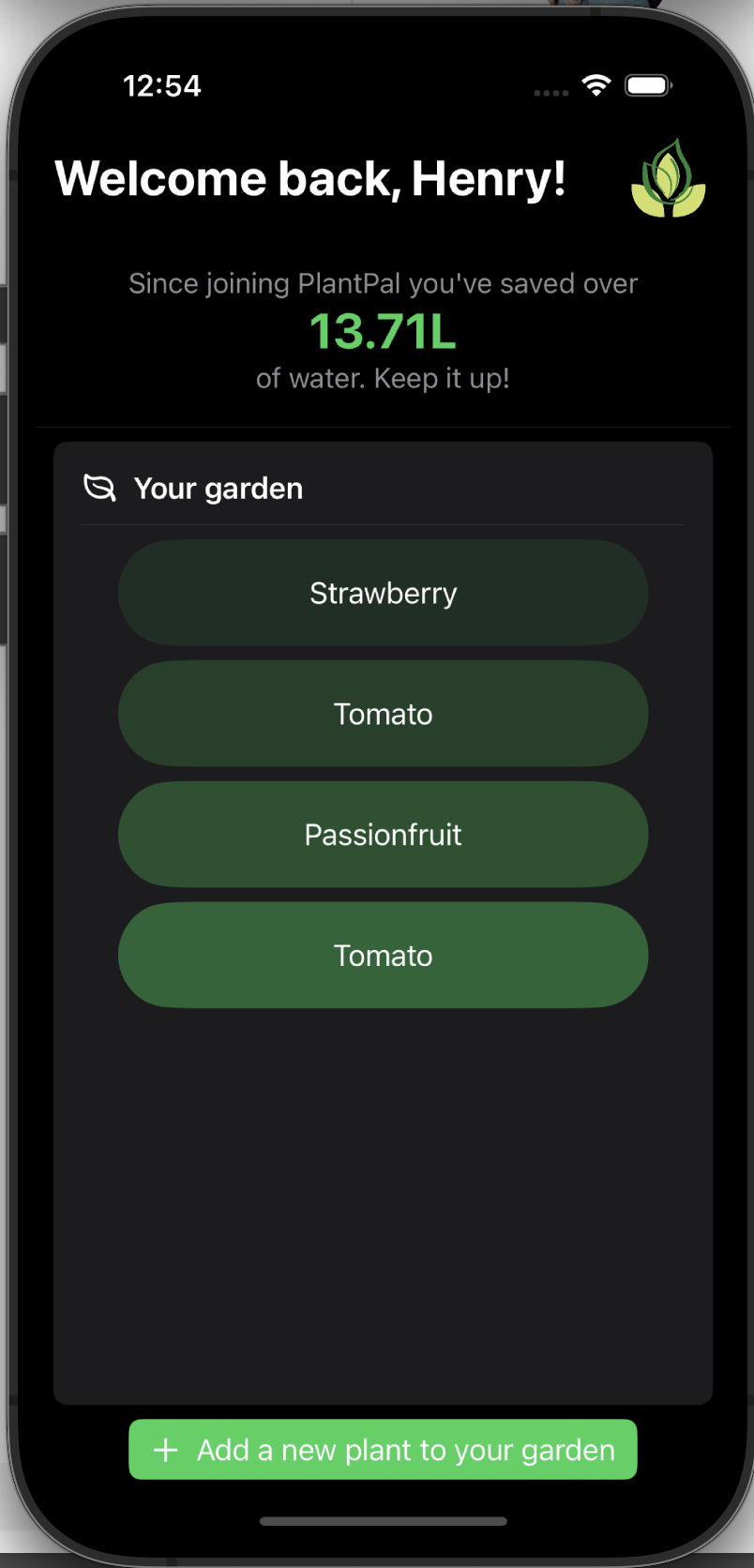 PlantPal is designed to be a simple and accessible way to save water while gardening. PlantPal aims to bring premium gardening features such live growing conditions to any and every gardener. We take into account the precipitation, evapotranspiration, temperature, and plant species in order to calculate the water requirement for each plant in the user's garden. In doing this, we endeavour to support sustainable gardening practices.