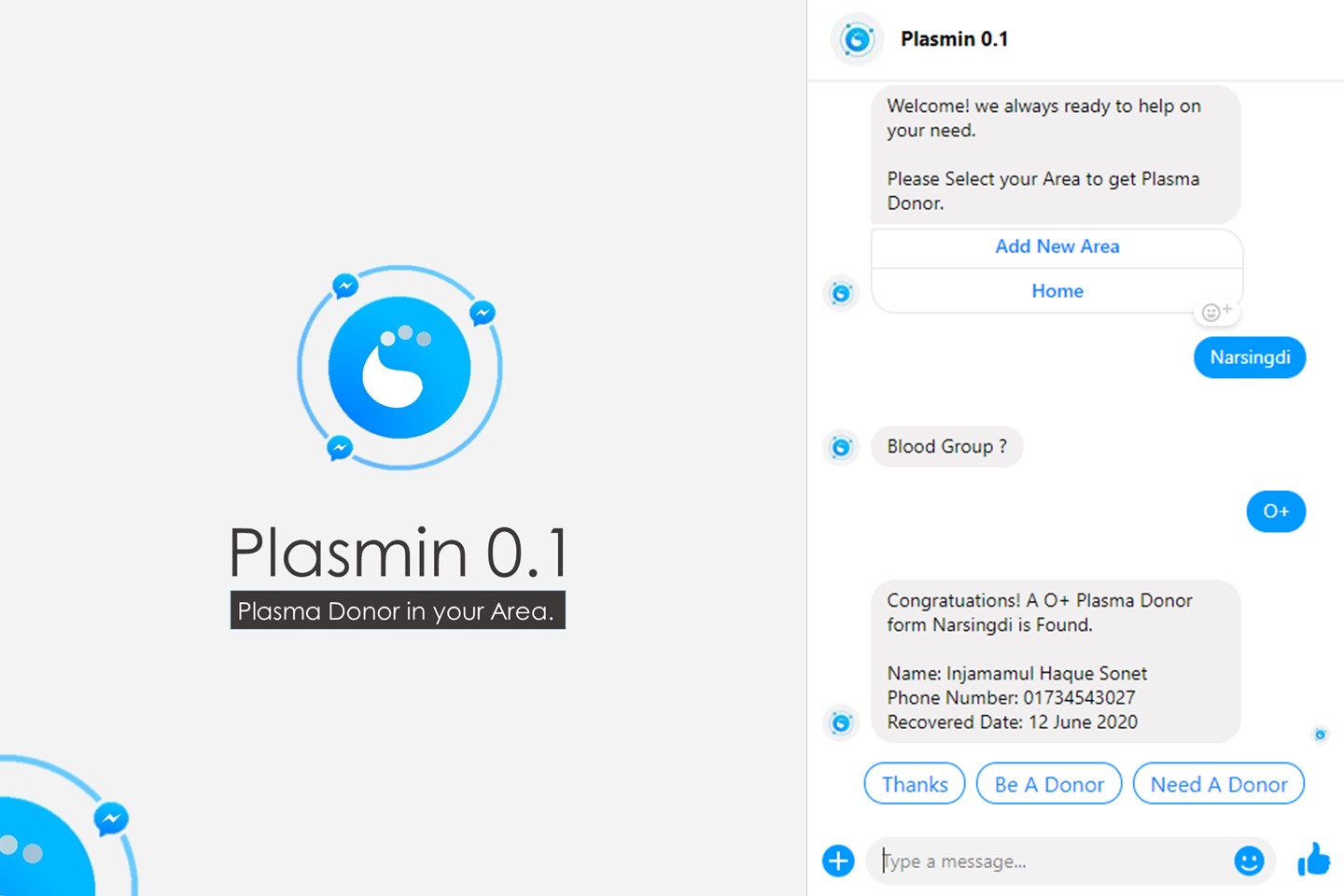 There are some Android apps where the information of plasma donors is available in the same way but they can't serve as many people as we can with our Facebook Messenger bot. Besides, being free, people feel comfortable finding a solution on Facebook. So we are really proud to think that we can help thousands of people through our bot. We showed our work to the head of our department, who appreciated it very much and said that he would make arrangements to promote it.