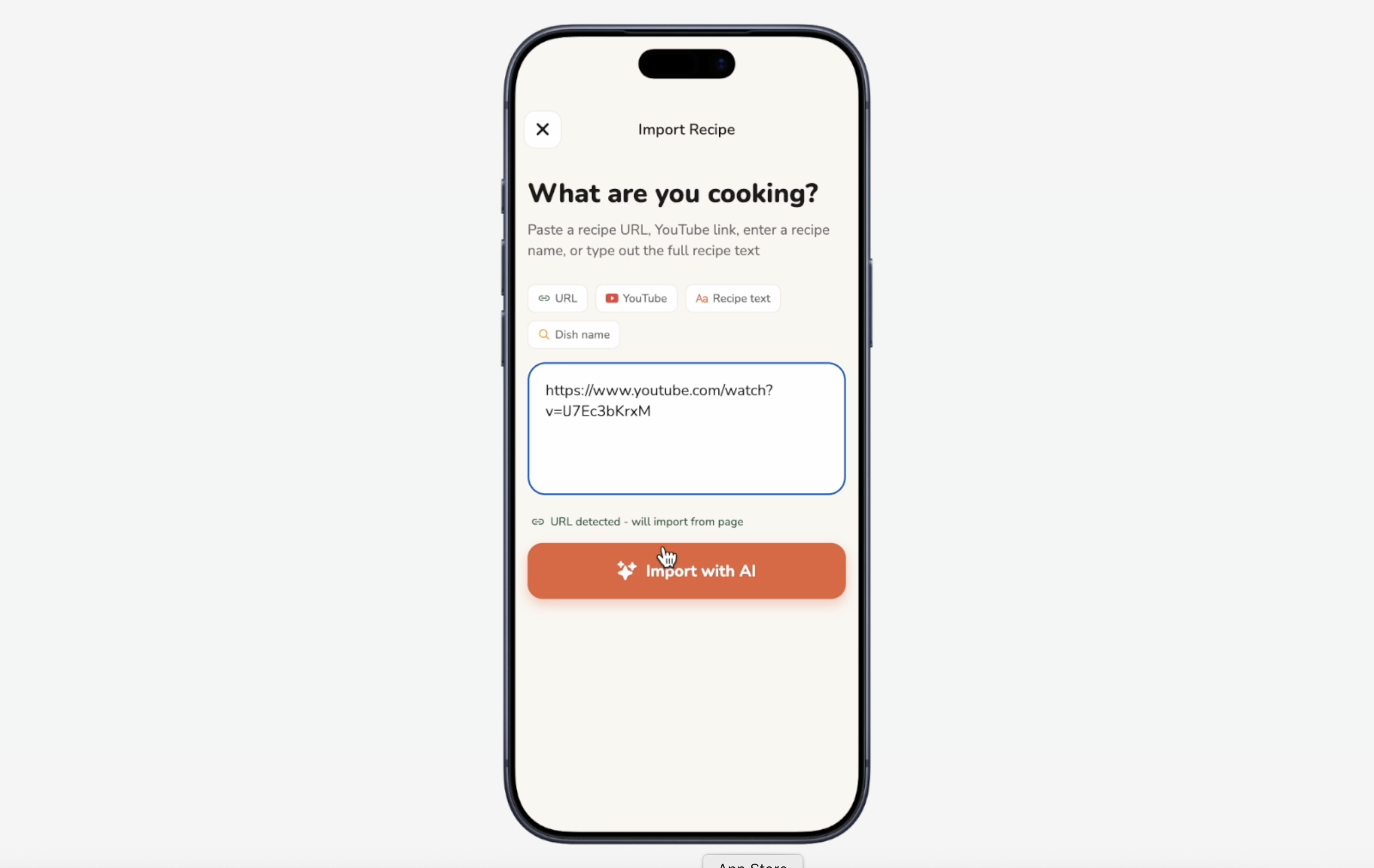 - React Context + localStorage for persistent state AI prompt chaining powers the core logic, including structured recipe extraction
