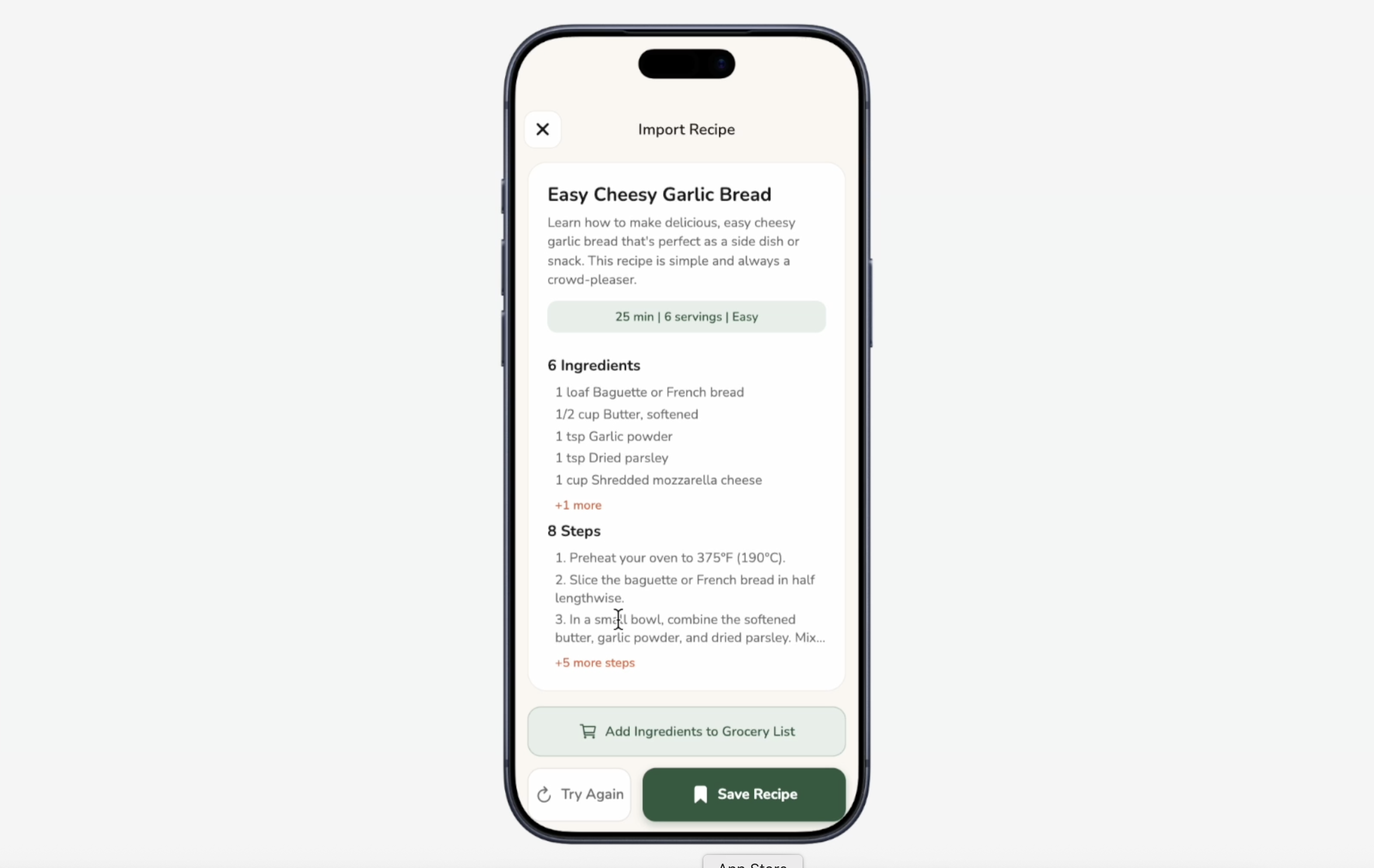 - Data consistency, ensuring parsed recipes always returned usable ingredient and step structures.