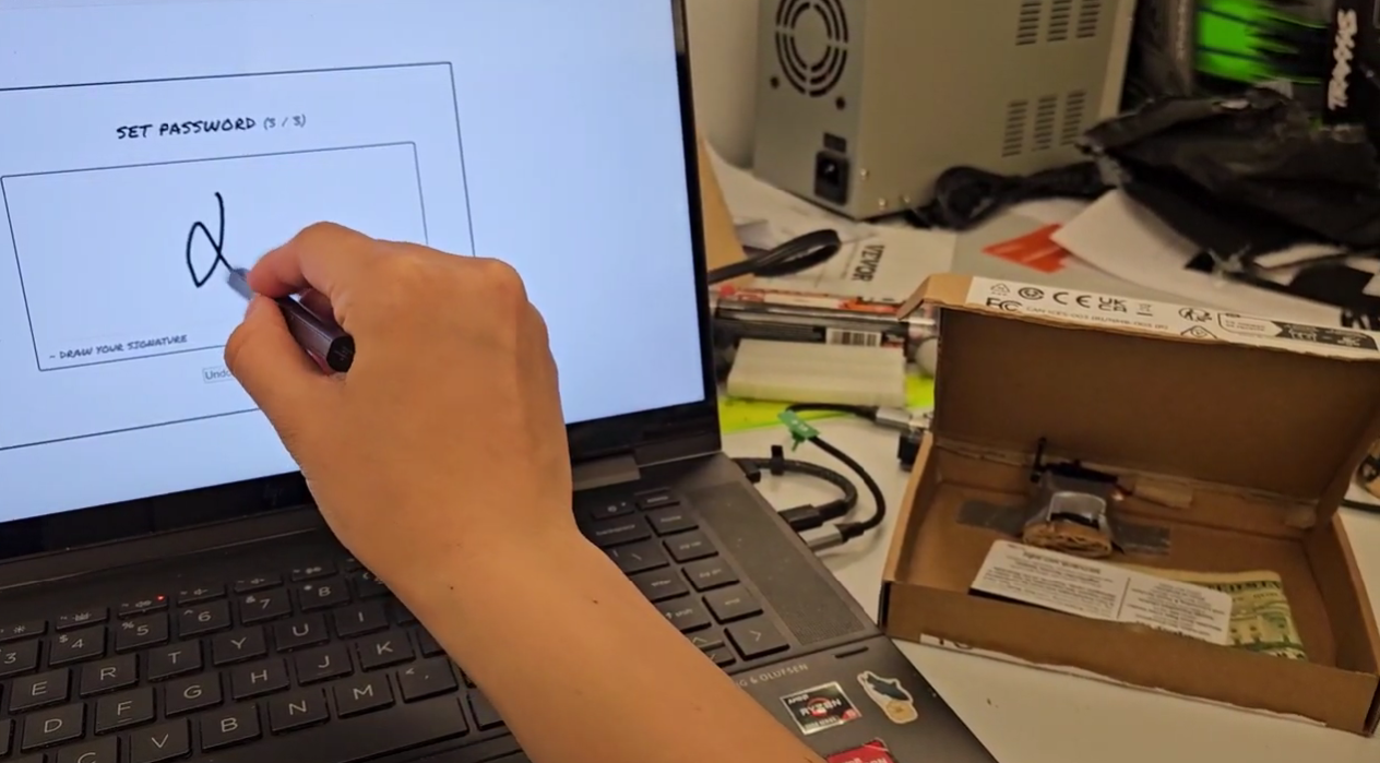 Plock is a secret safe that opens based on the user's signature. The box locks when the user enters 4 signatures. Then, the box becomes locked and the user must put in their unique signature to open it. Unlike PINs, signatures are untransferable and accountable.