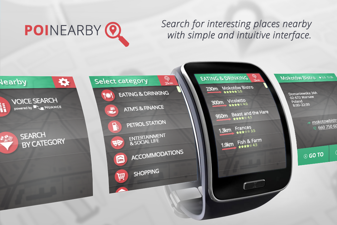 When you need to find a Point of Interest you just have to select one from predefined categories or use voice search function (supported by the Nuance engine).