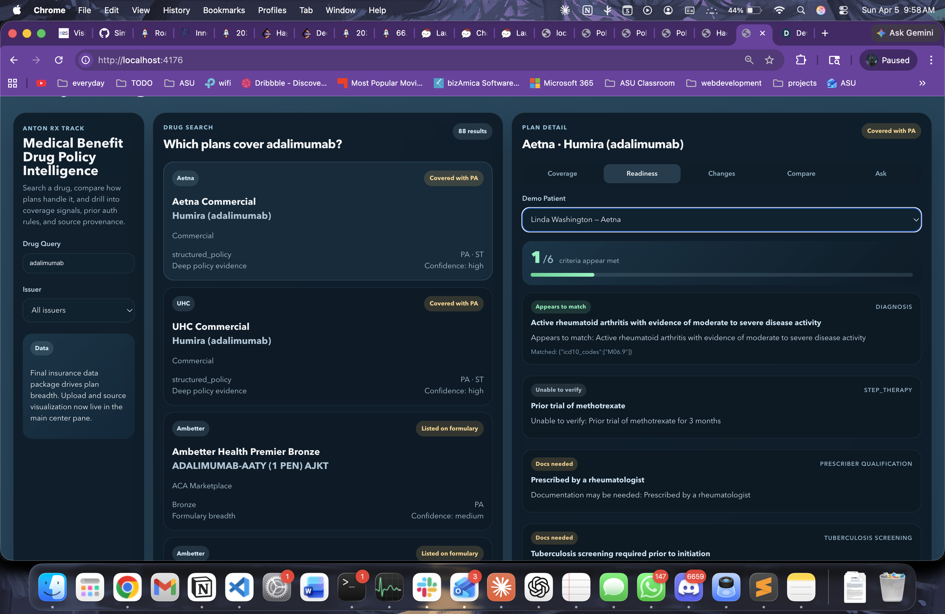 The biggest challenge was correctness. Payer data comes in inconsistent formats, especially PDFs, so normalization and trust were much harder than simple ingestion. We also had to make sure the AI stayed grounded in structured results rather than generating unsupported answers.