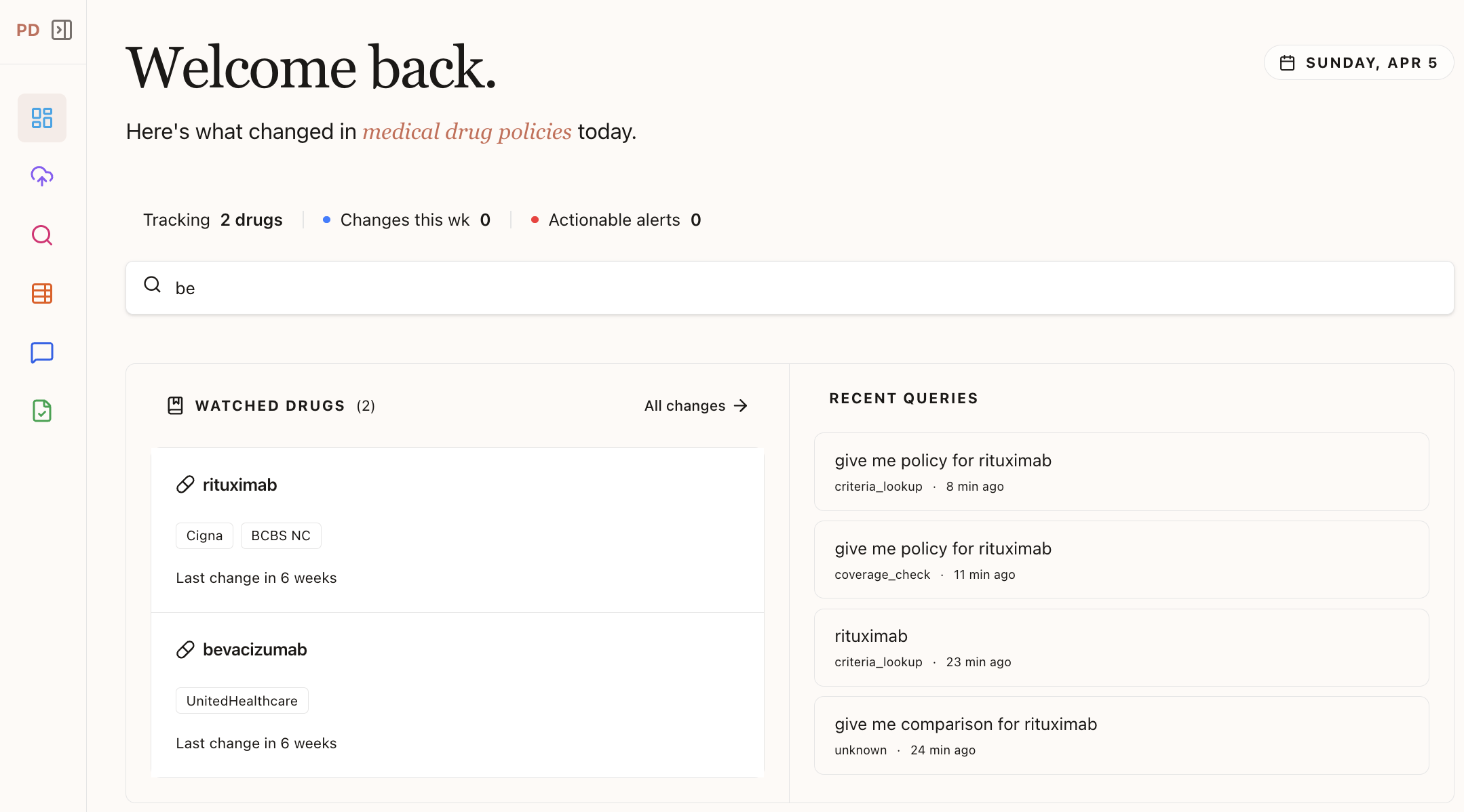 We also surfaced a real medical versus pharmacy benefit discordance in a major drug policy. Same drug, same payer, different benefit channel, different access rules. That was exactly the kind of thing this system is meant to uncover, and seeing it happen for real was a huge moment for us.