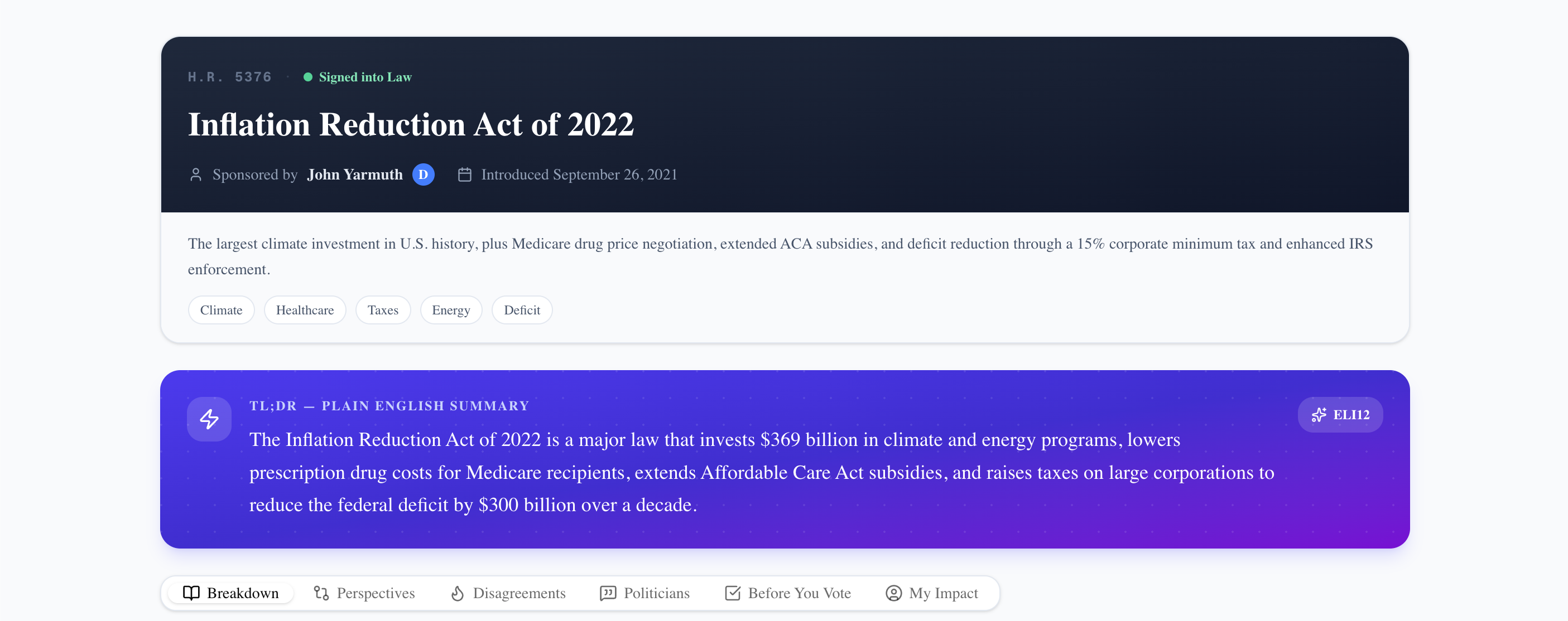Neutrality is genuinely hard. Every word choice in a political summary carries some framing. We also learned that most people's mental model of how a bill becomes law is pretty fuzzy, which made us realize the plain English breakdown might actually be the most valuable part of the product.