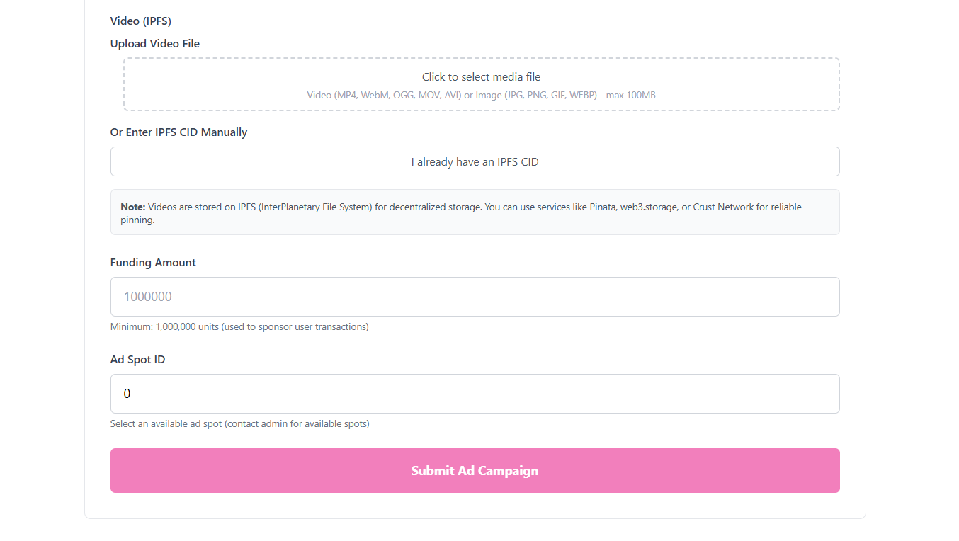 We built a working prototype where: Users can watch ads and instantly receive gas credits Advertisers launch campaigns from the dApp AI smartly selects ads using relevance scoring Gas credits work across multiple Polkadot parachains Our Substrate pallet handles rewards, fraud detection, and campaign accounting Creating a functioning proof-of-watch system and integrating AI-driven ad selection were major wins.