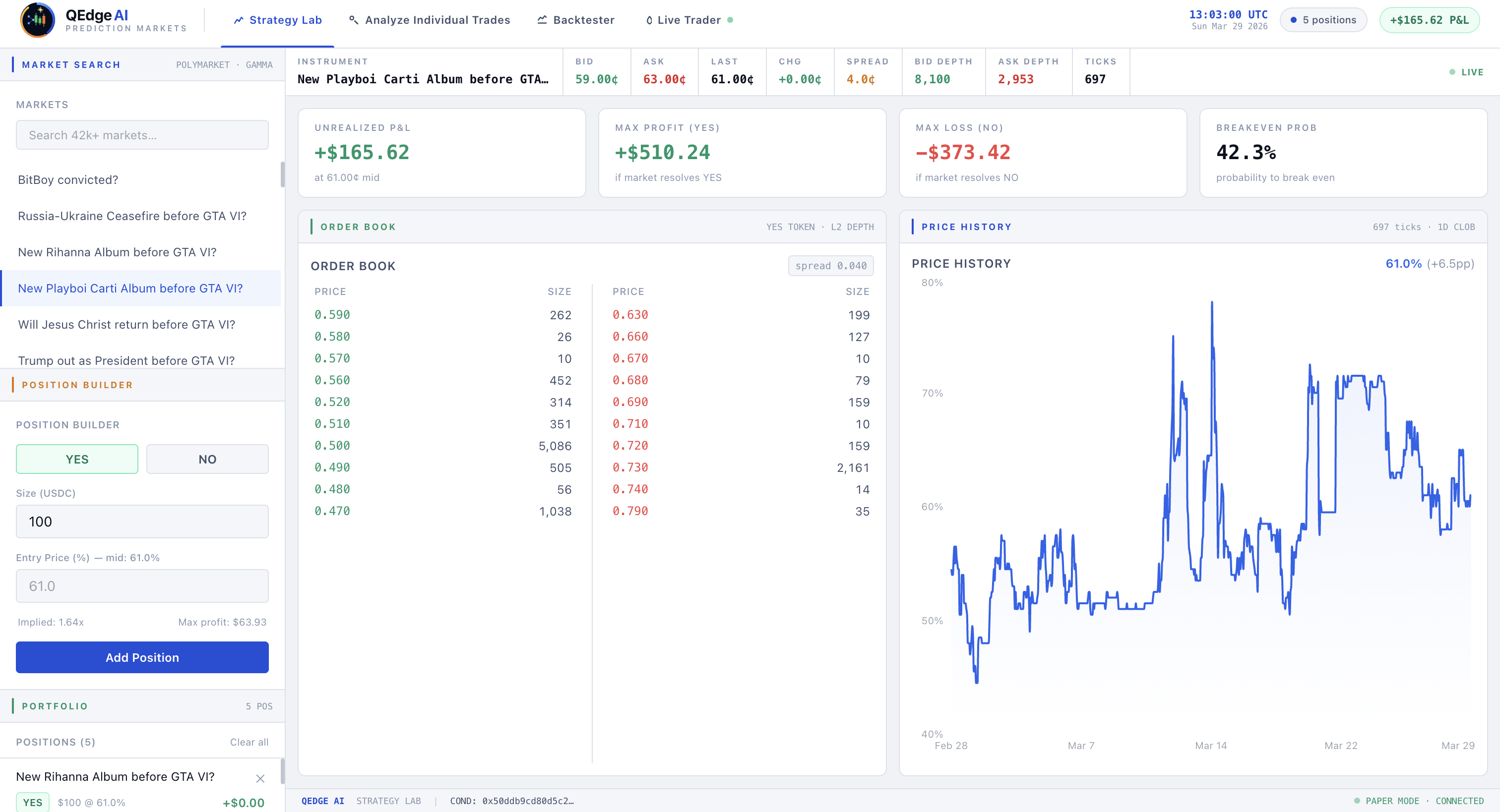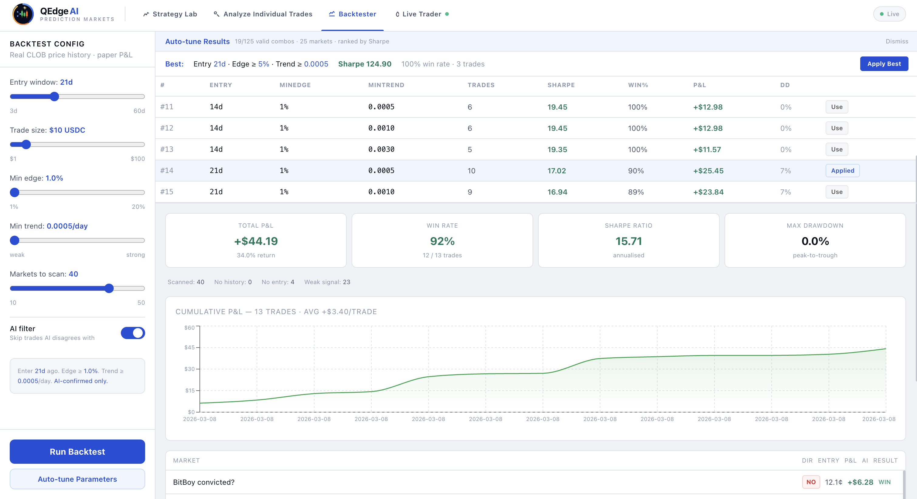 A general strategy to select trades ahead of time by taking advantage of all available information in news and related markets, using quantum optimisation to construct an optimal portfolio. Rather than just listing top trades, the system estimates probabilities using AI and news, measures how related different markets are, and builds a portfolio that balances edge and diversification. So instead of "top trades", you get a set of trades that actually make sense together.