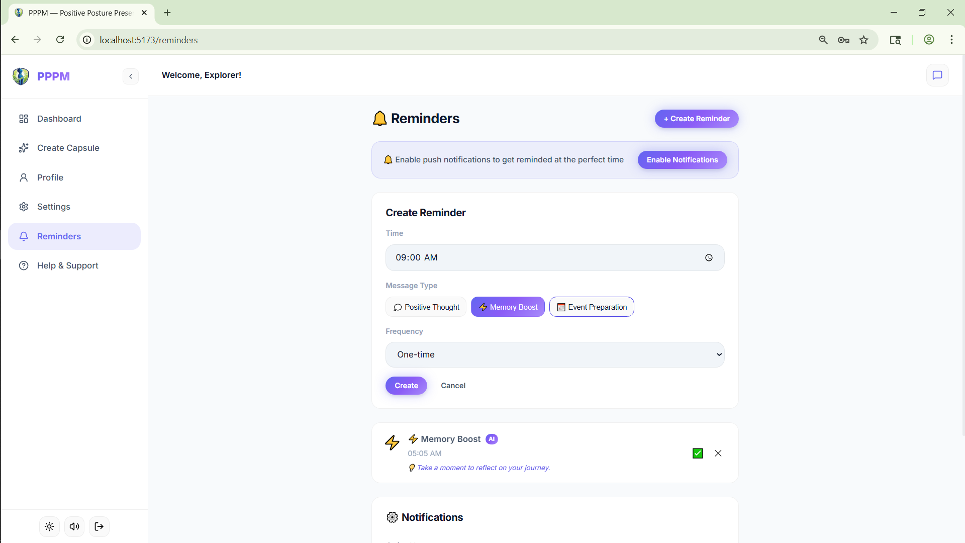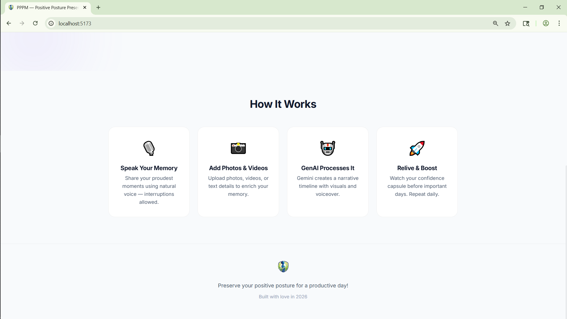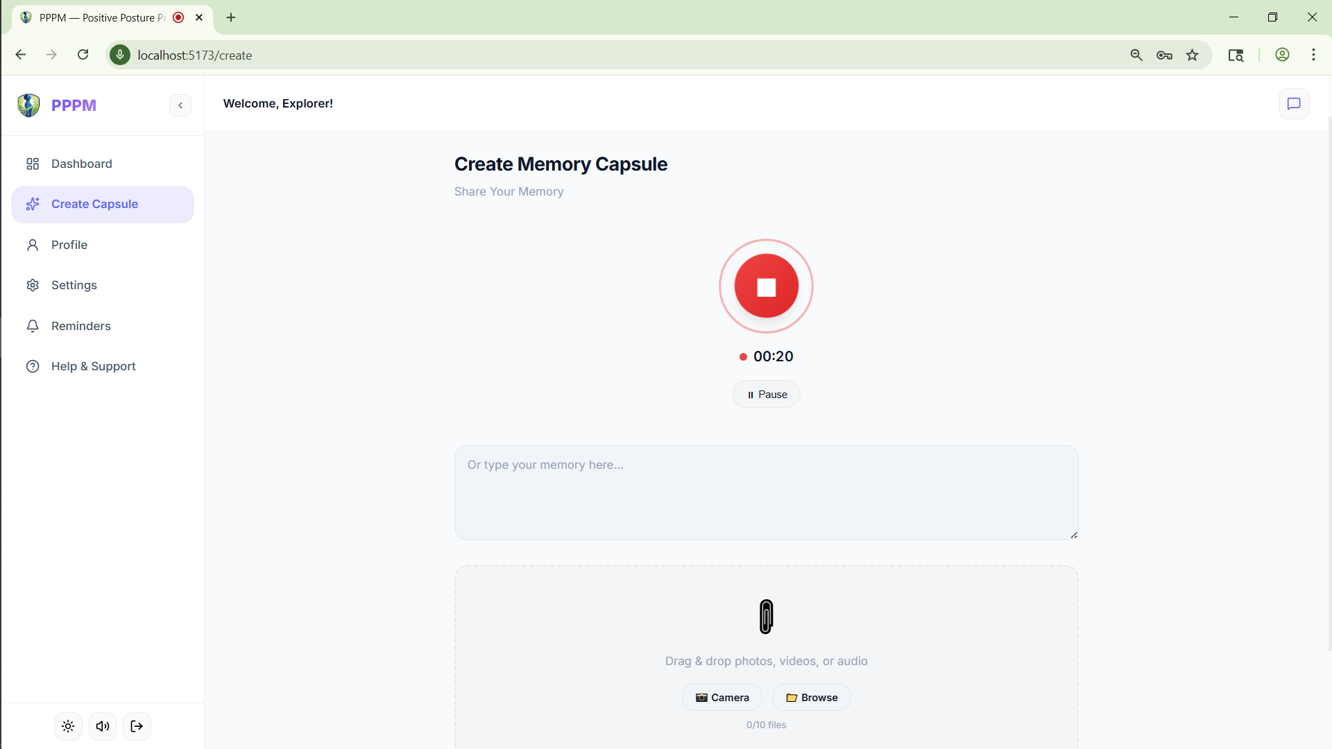 The core idea is simple: people often forget their strongest moments right when they need confidence the most. PPPM helps users capture those moments in voice, text, image, and video, then transforms them into an uplifting capsule they can revisit before exams, interviews, presentations, and high-pressure days.
