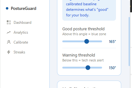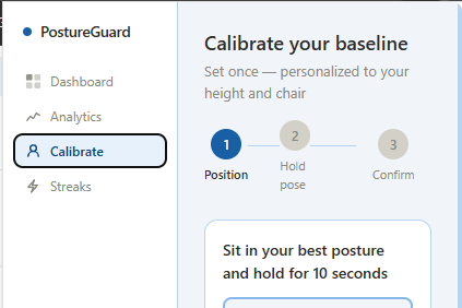 Built a fully working real-time posture system, smooth UI, personalized calibration, and privacy-first on-device processing all within a hackathon timeframe.