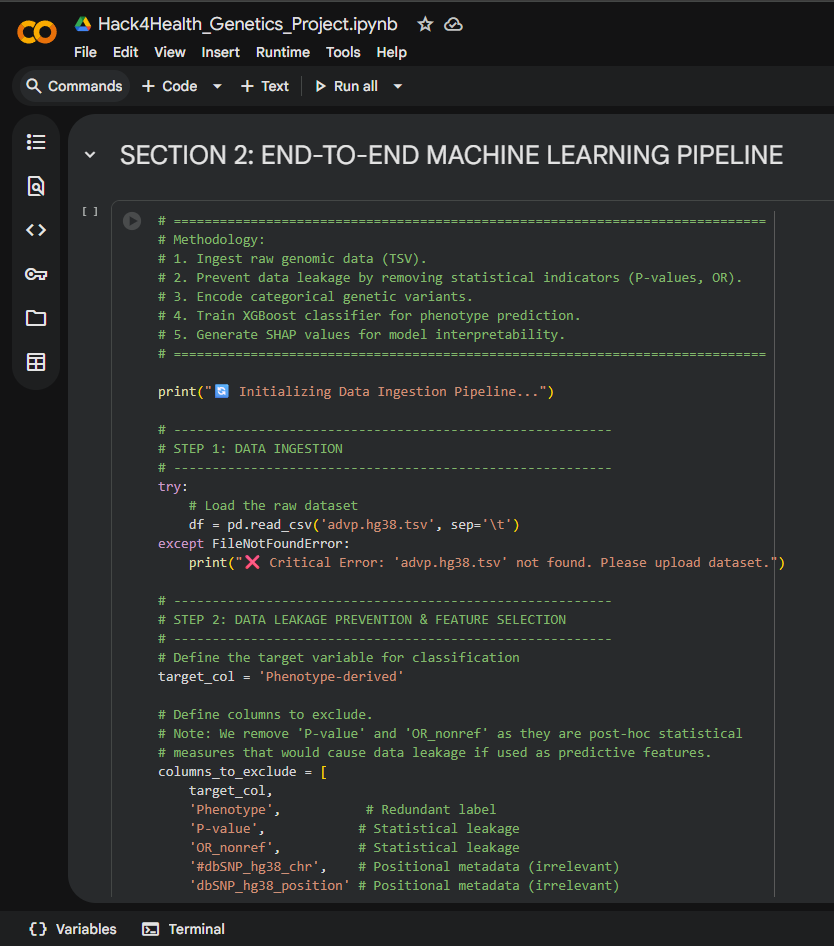 - The "Data Leakage" Trap: Our initial model achieved 100% accuracy, which seemed too good to be true. We discovered the dataset included statistical columns (like P-values) that gave away the answer. We had to rebuild our pipeline to strip these out and train on only the biological variants.