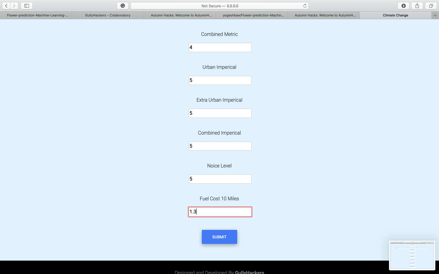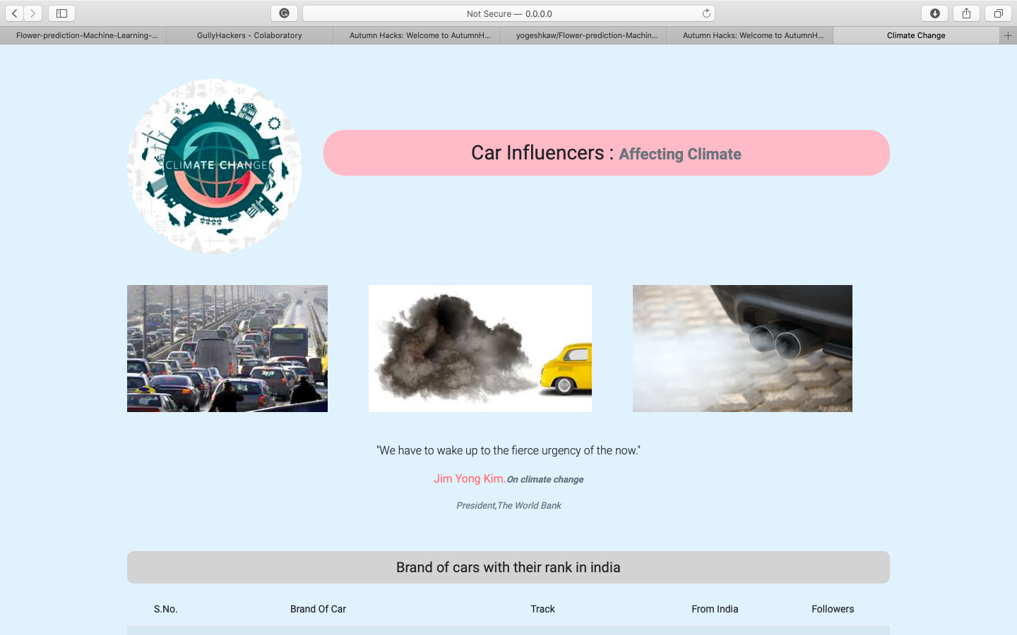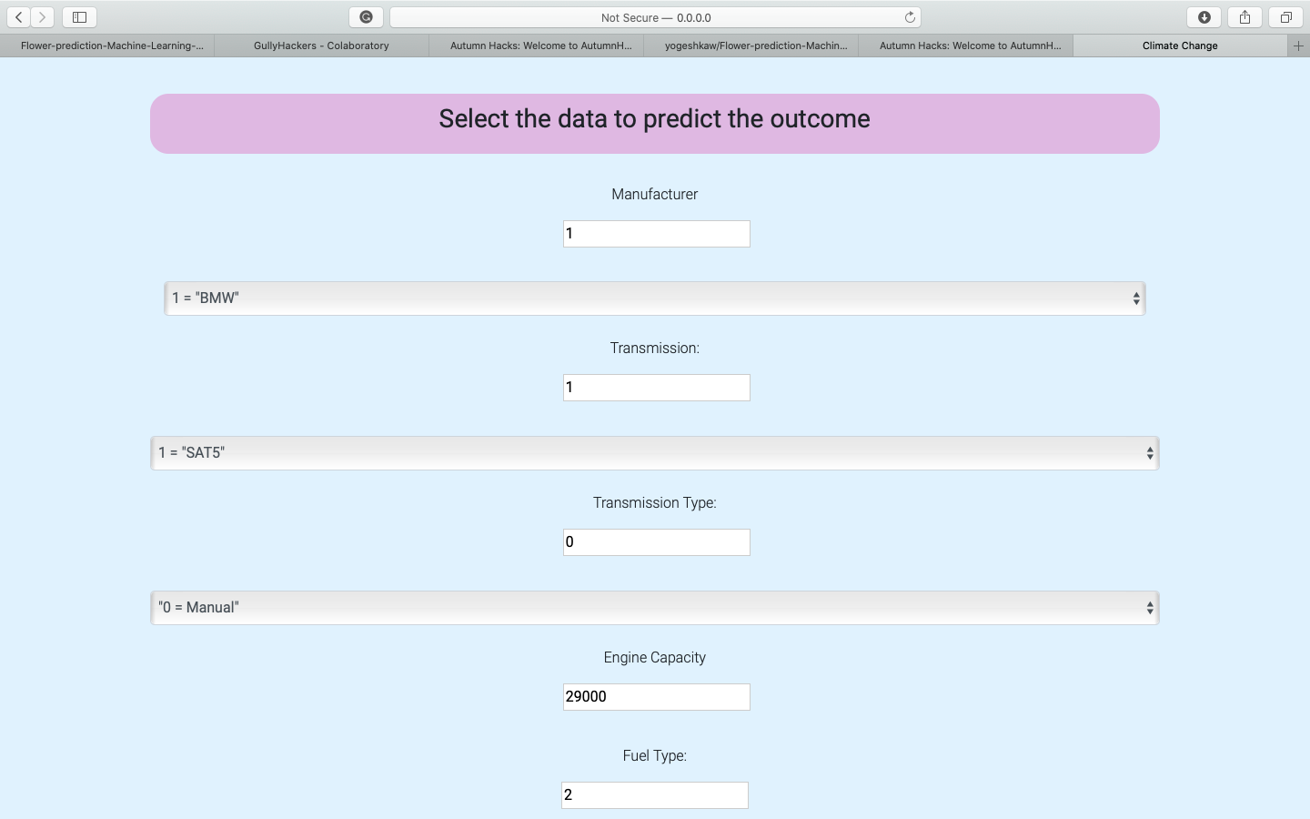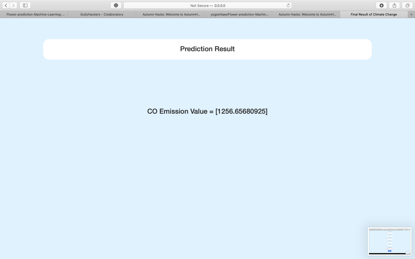 The main aim of this project to predict CO emission from the given data which is related to car models and their CO emission. In order to predict CO emission, we need 13 features for more details to run our project. This project will help us to reduce CO level or to control CO level in our atmosphere. As this Machine Learning model predicts CO emission from the component of the engine, transmission, transmission type, fuel, etc. By using this model we can predict CO emission in an earlier stage of car development with 90% accuracy on unseen data. This model will help car manufacture to gain information regarding their car without running several tests which will reduce the cost of designing as well as R&D. This web application can be also used by National Govt. to make sure no car manufacturer is using an engine with a high level of CO emission. Govt. can use this application to predict the CO emission of different cars and after that, they can cross-check this by surprise inspection.