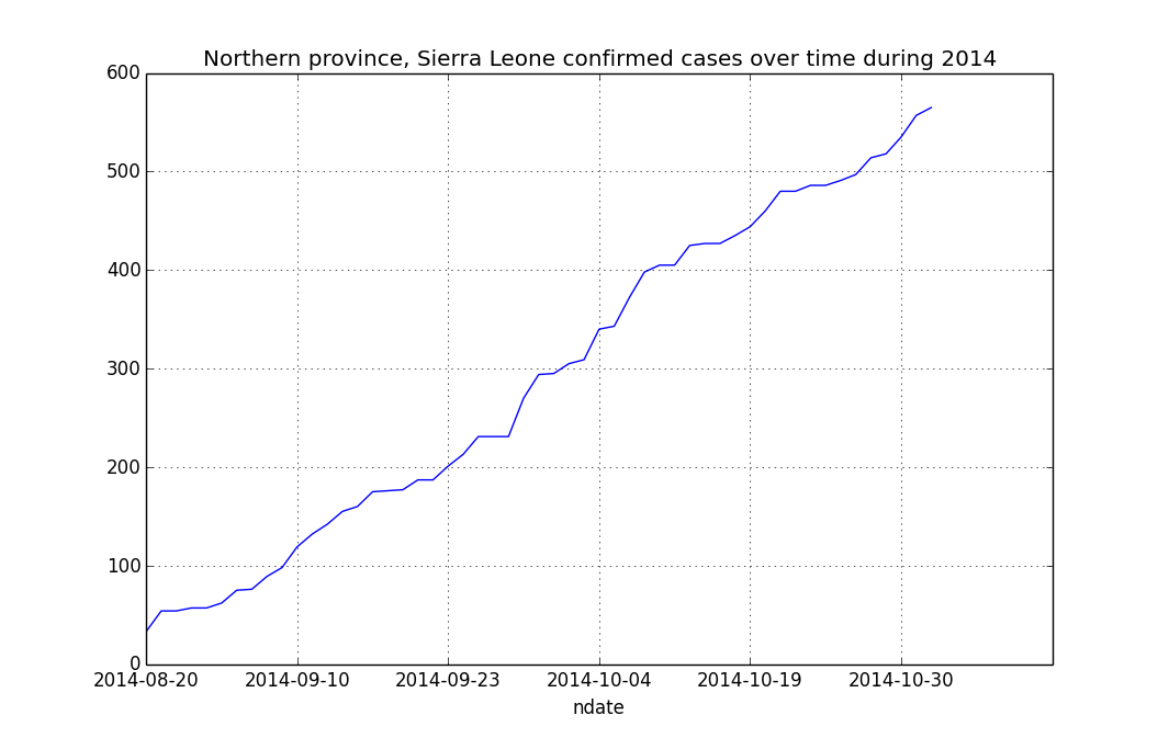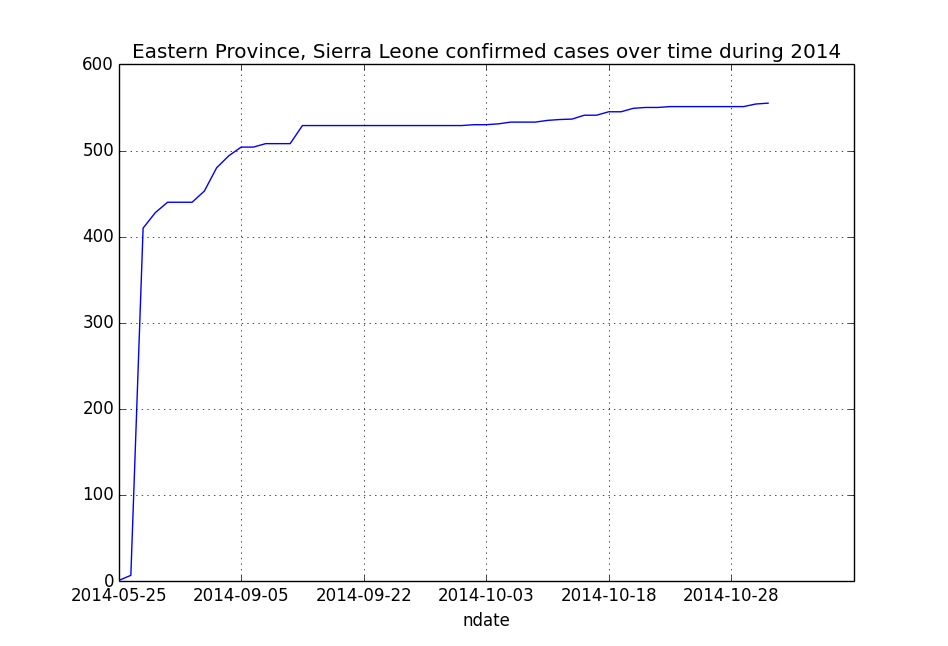 Through this simple visualization we hope to change efforts and track down data related to food drop-offs by health organization and the also the sale bush meat in regions with trending ebola cases to see if either are covariates of ebola case growth.
