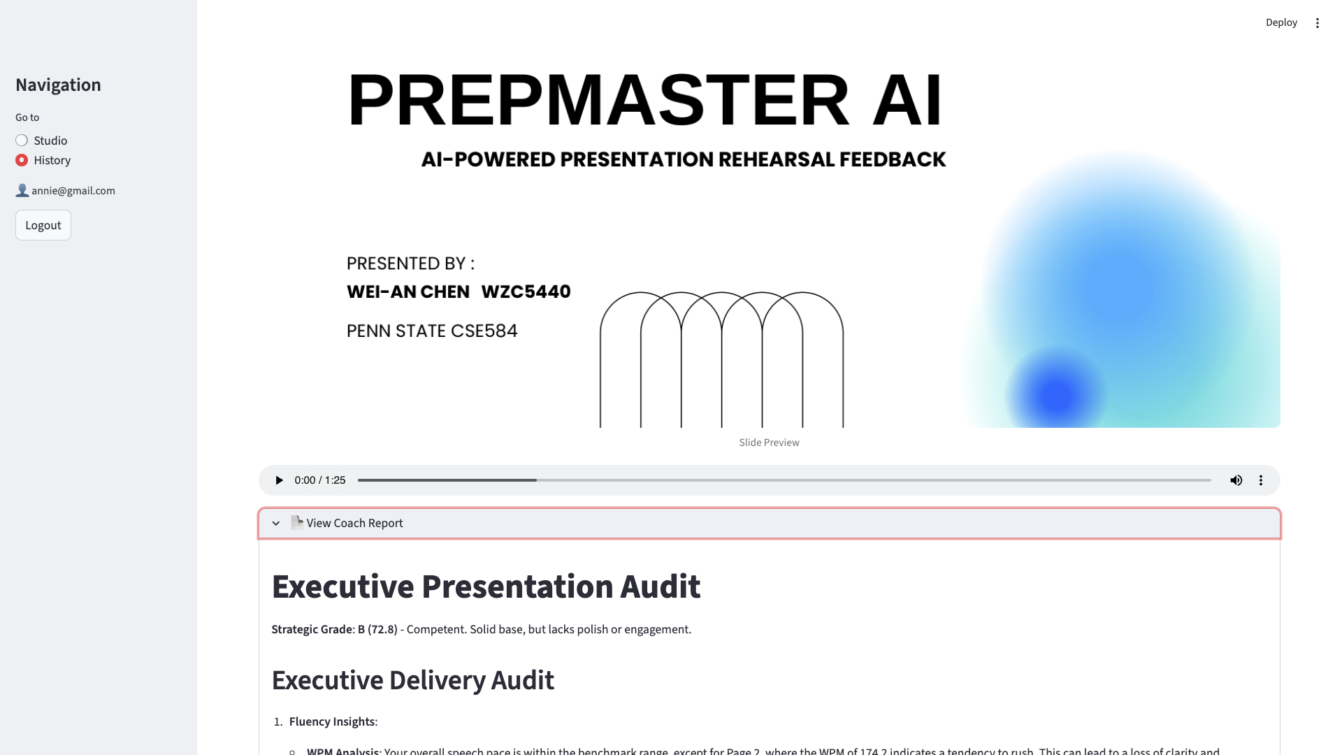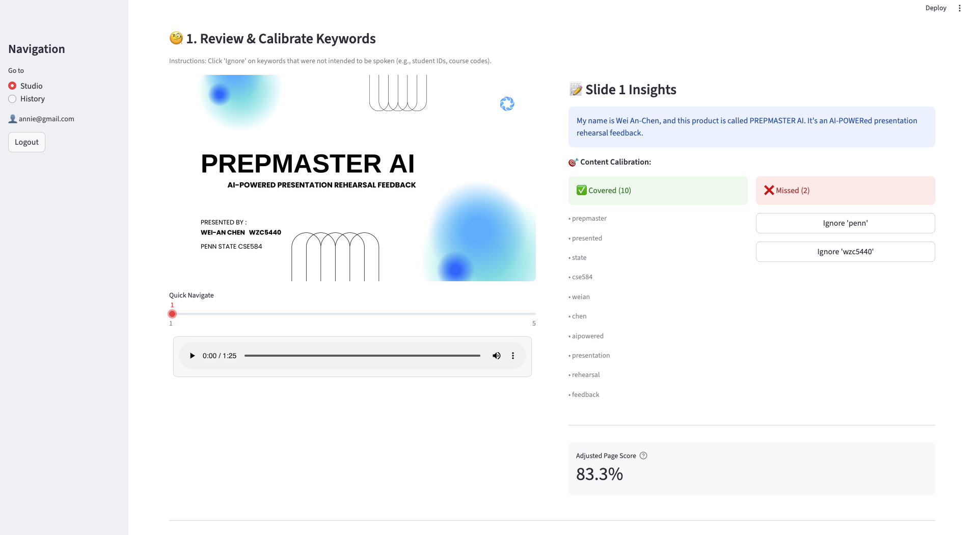 I built PrepMaster AI to provide a granular, slide-level diagnostic that answers the "hard" questions: "Did I actually explain the complex chart on Slide 5, or did I just read the title?"