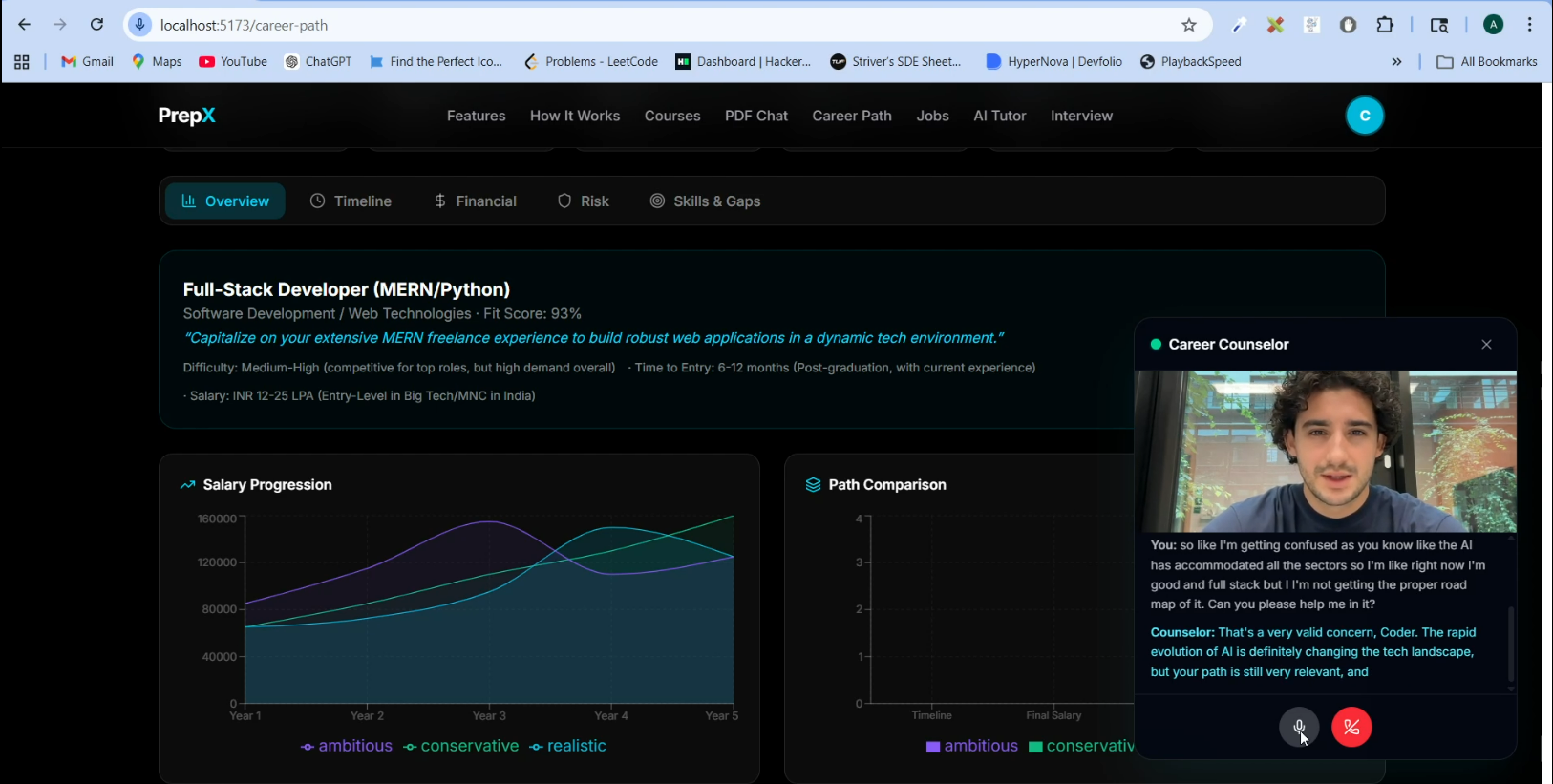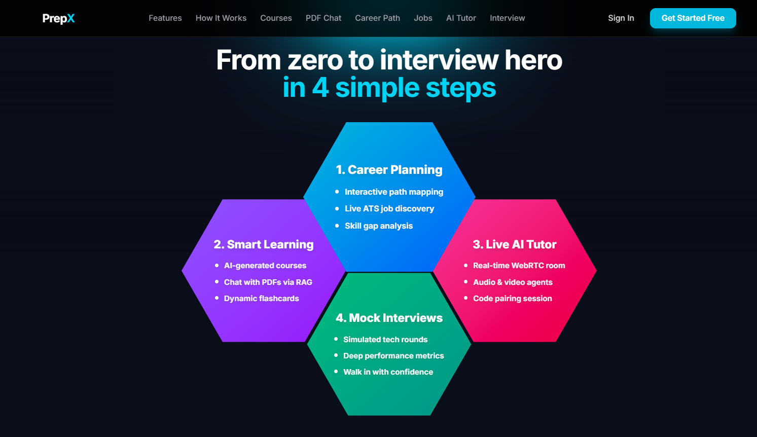 We were inspired to create PrepX, a platform that integrates learning, interview preparation, career guidance, and job discovery into a single intelligent ecosystem powered by AI.