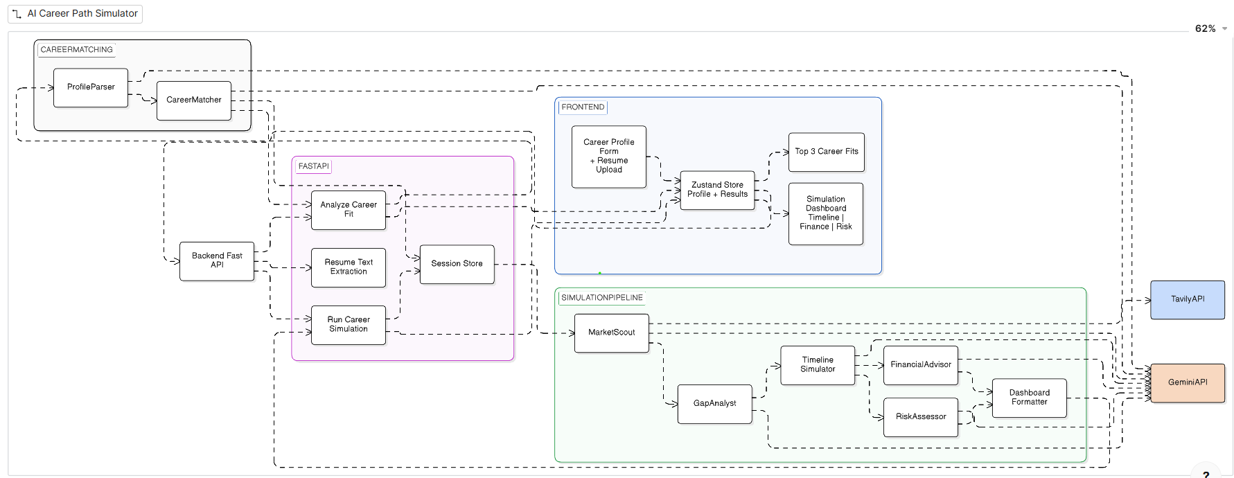 -Designed complex multi-agent workflows using LangGraph to simulate career paths, analyze skill gaps, and generate market insights, enabling AI to perform structured reasoning instead of simple text generation.