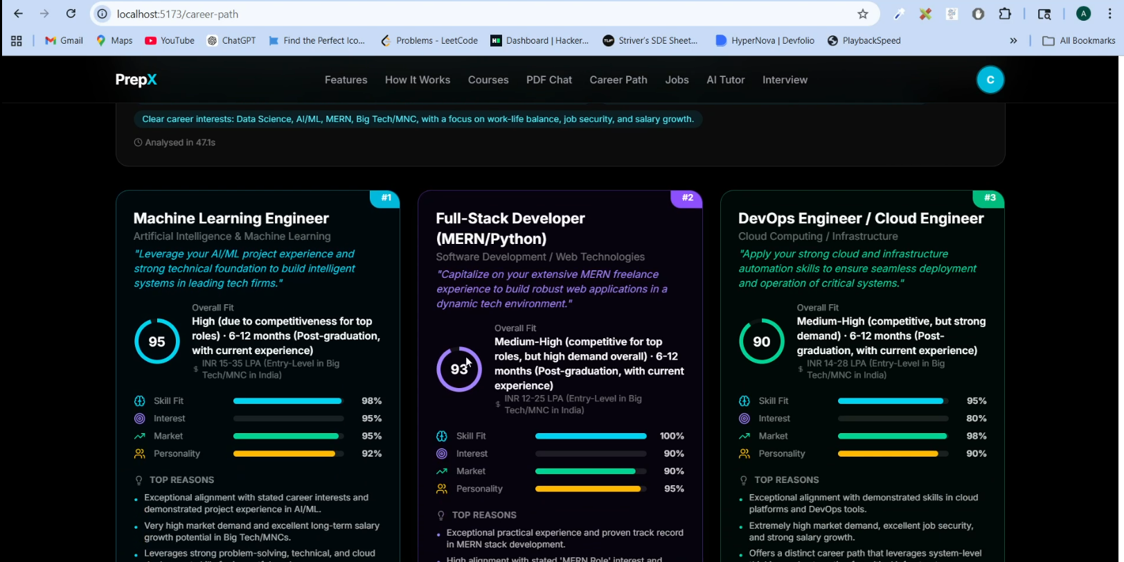 Intelligent Job Discovery PrepX analyzes a user’s resume and automatically matches them with relevant job opportunities, highlighting skill gaps and providing insights into market demand.