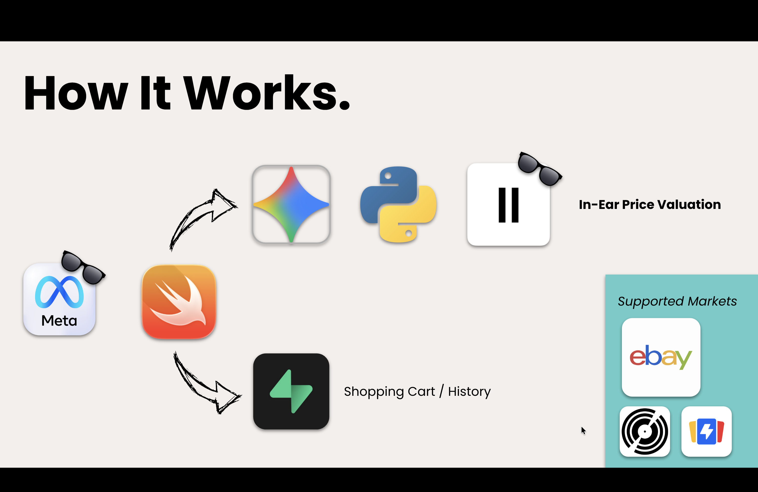We ran into some issues connecting the backend to the Meta Ray-ban glasses themselves. Handling inconsistent outputs from the Vision model and mapping them into reliable search queries was also difficult. Latency across multiple API calls made it challenging to keep the experience feeling real-time.