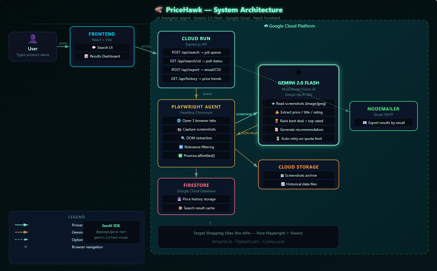 Built with Gemini 2.0 Flash · Google Cloud Run · Firestore · Playwright · React