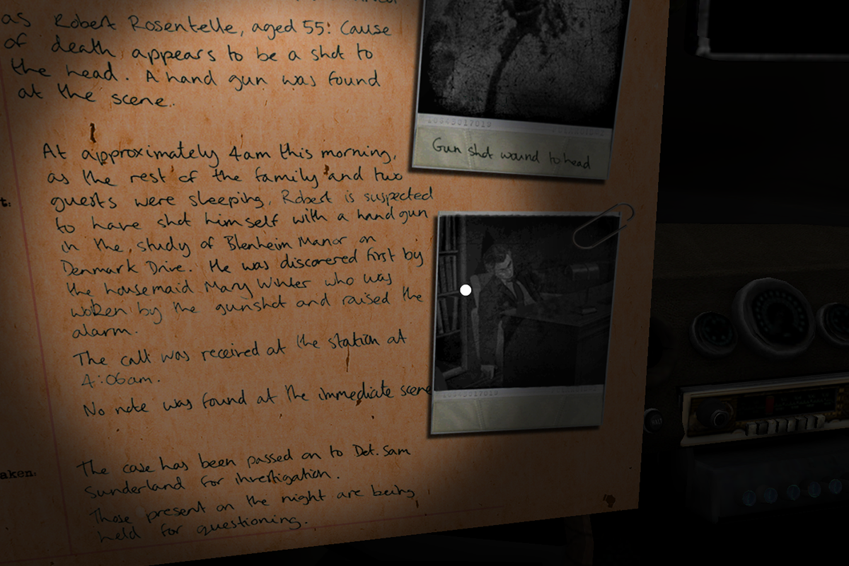Private Eye Case Files is a detective game which places you in the role of fledgling detective, Sam Sunderland. Sam’s just got the call for his first case: the suspected suicide of the high-profile, rich industrialist Robert Rosentelle, who’s been found at his family home, Blenheim Manor, New York City.