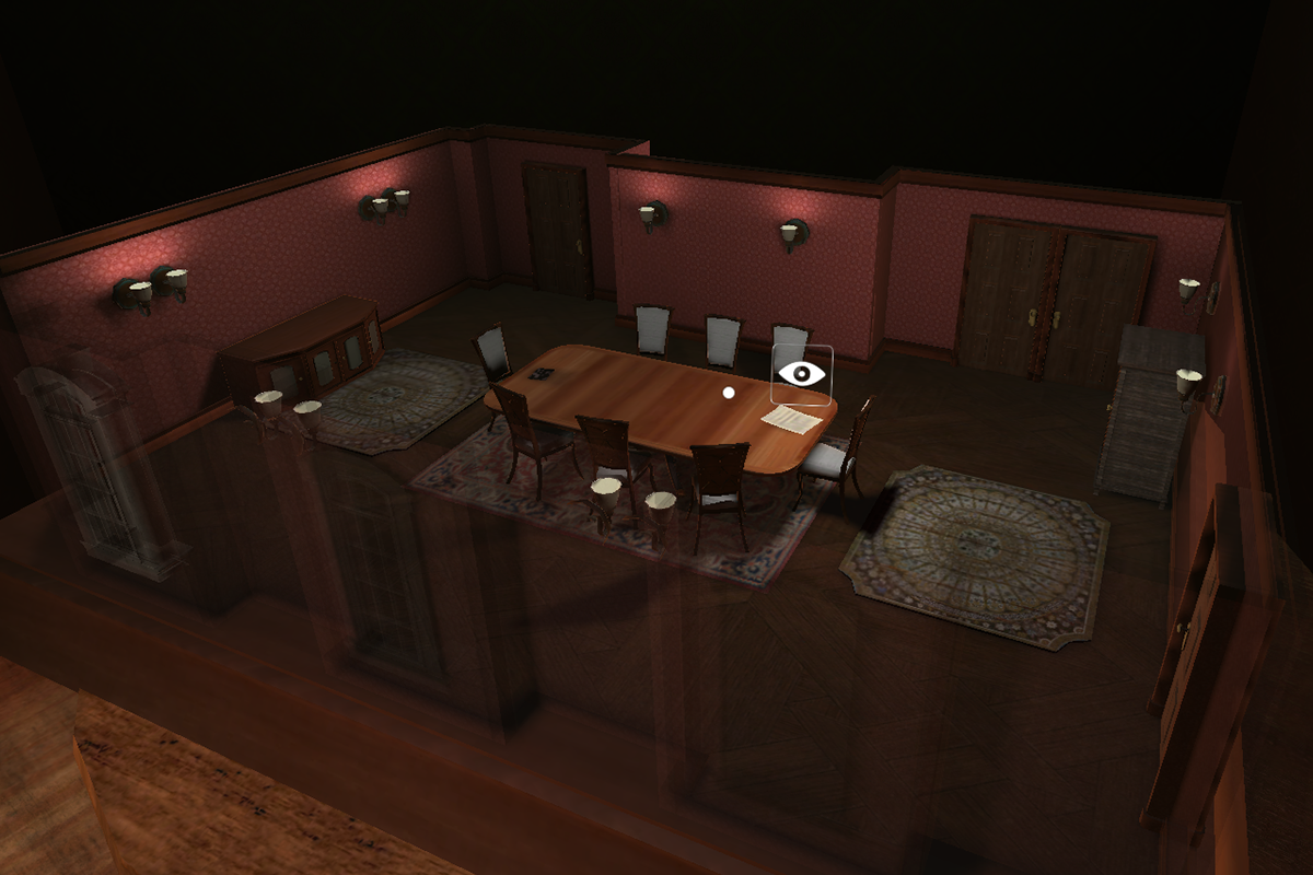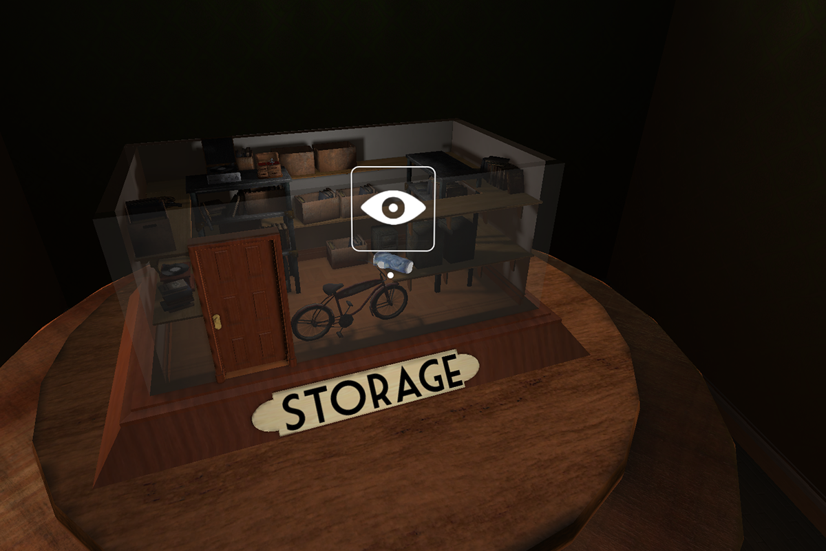 As you discover investigation areas within the house, you can transport yourself into the room for closer inspection. This game plays with your sense of presence and time as you constantly switch perspective from your god-like, conceptual view, to a first person perspective inside a scene in the murder house, as you carry out your investigation.