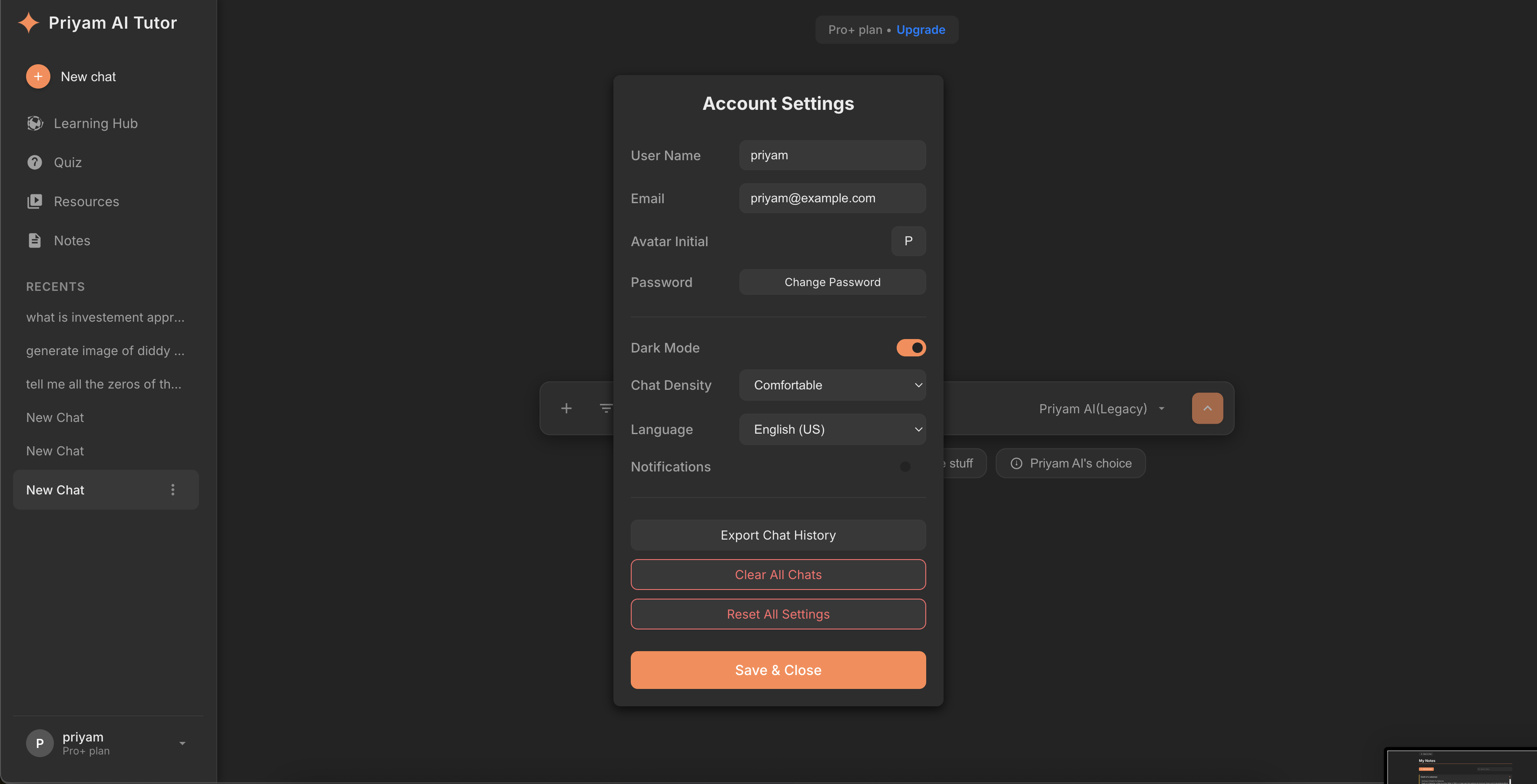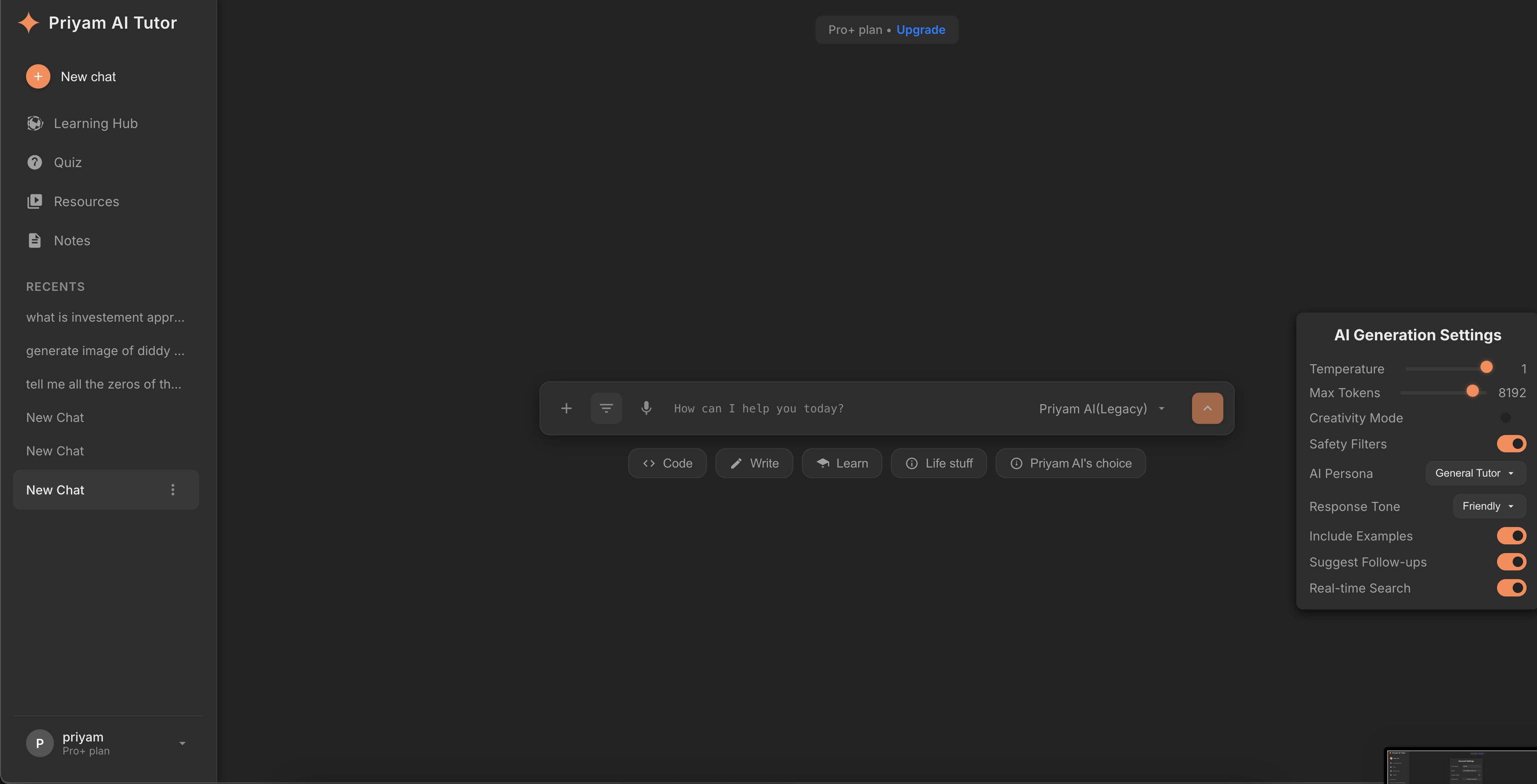 Inspiration The idea for Priyam AI Tutor was born out of a simple realization: students often struggle to get instant, reliable academic support, especially outside classroom hours. I wanted to create a lightweight, easily accessible AI-powered tutor that anyone could use — no installations, no wait times, just direct and helpful assistance on demand. My goal was to democratize personalized tutoring using the power of artificial intelligence.