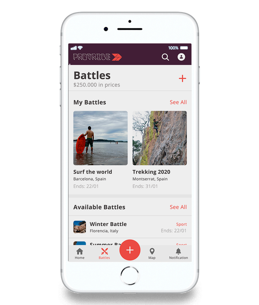 Both battles and challenges can be designed in the app by local businesses or sport organisations. Comeptiting users will be rewarded by and get rewarded by ProPoints. The ProPoints can then be spent to ourchase gift cards in the app.Gift cards can be spent in online stores to purchase favourite sports gear.