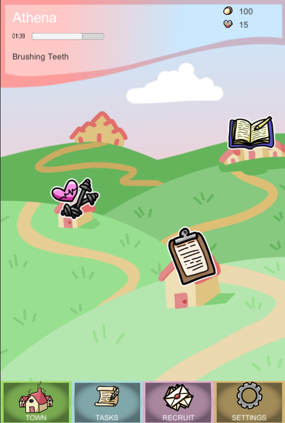 By taking advantage of gacha games' addictiveness, we want to incentivize getting work done and living a healthier lifestyle by letting the player invite different types of characters to their town using in-game currency obtained by completing tasks.