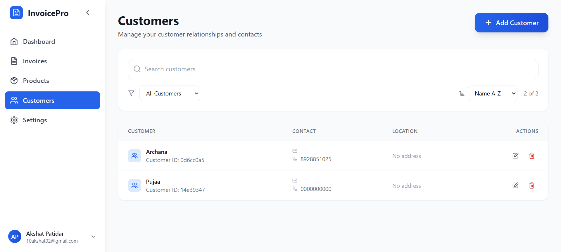 html2canvasandjspdfeffectively to convert complex UIs into polished PDFs. - The importance of clear database design early on — a well-structured schema made it easy to evolve the application and add features like product filtering or top-customer analytics.