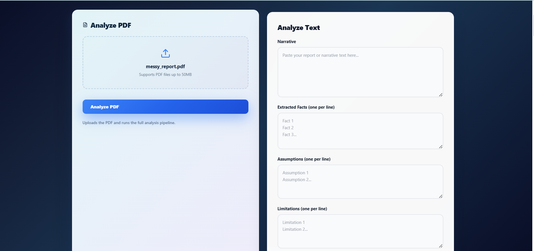PDF table extraction PDF tables have no standard structure. We used multiple parsing strategies and implemented graceful fallback behavior so failures do not break the pipeline.
