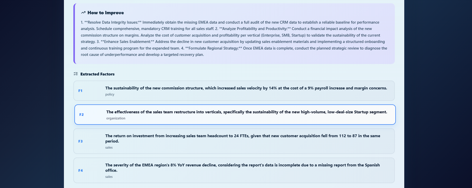 Agent hallucination prevention LLMs can generate plausible but incorrect information. We enforced strict context binding so agents can only reference provided inputs. All outputs are validated against the input context.