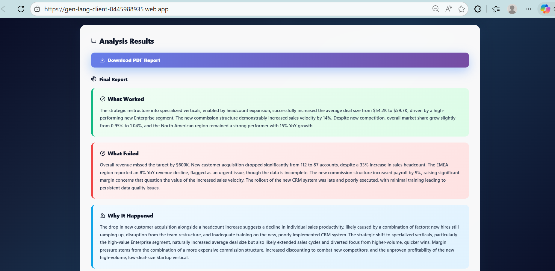 Performance optimization Sequential LLM calls increased latency. We optimized using async execution, connection reuse, and reduced token usage.
