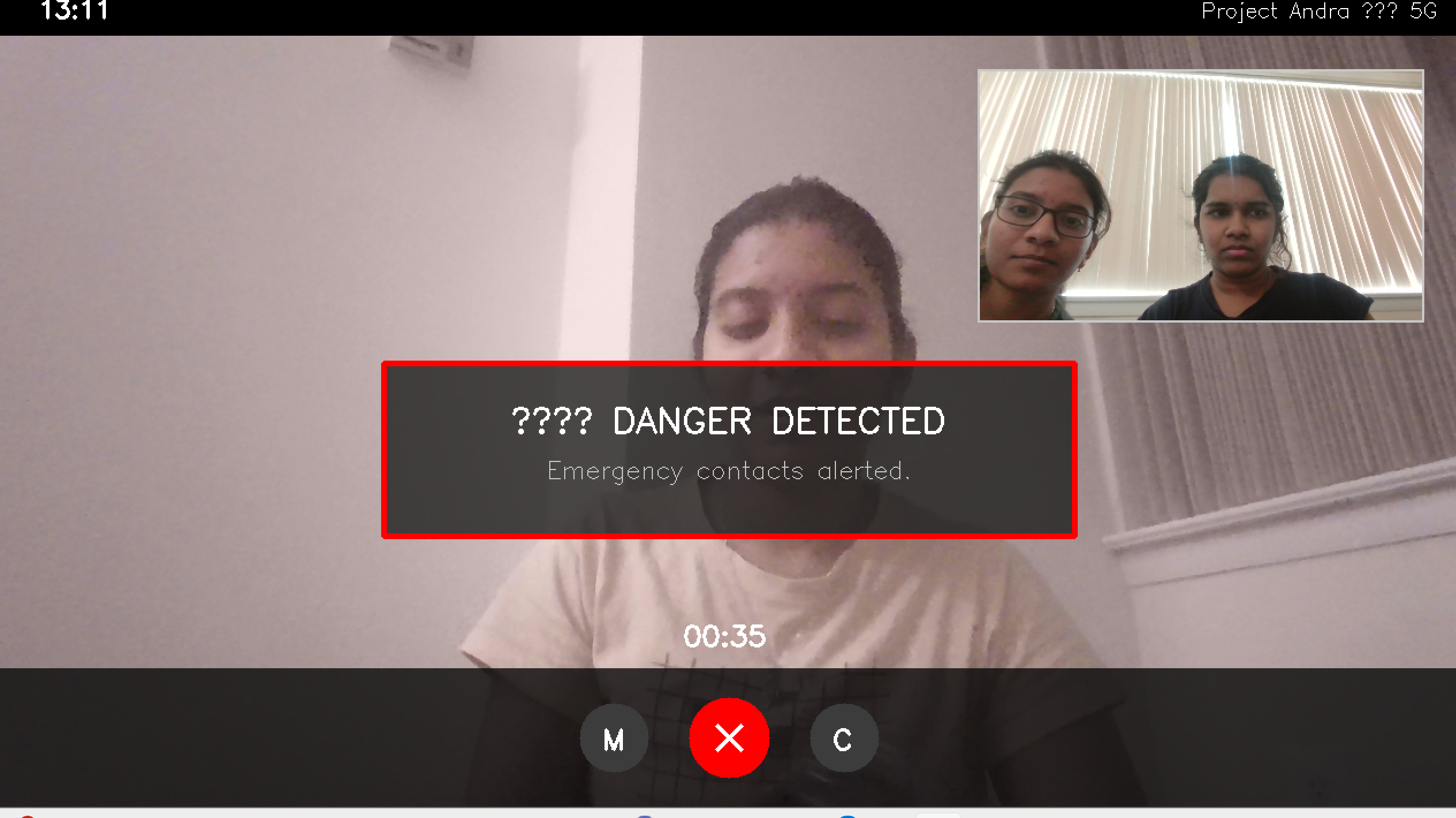 The "Silence" Trigger (Dead Man's Switch): This is our core innovation. If Andra detects a threat, she asks, "Do you know this person?" If you are too scared to speak—if you go silent—she doesn't wait. After 8 seconds of silence, she assumes danger, triggers a Red Alert, and uses Twilio to call your emergency contacts automatically.