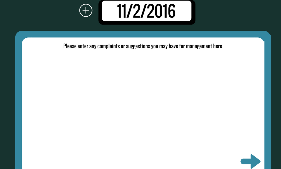 Then there is the File a Complaint page. Once again, this page was designed to be extremely open ended so that employees did not feel bogged down to enter a lot of information. Some ideas for further improving this would be to include a contact information form at the bottom where people can enter a number for them to be contacted back.