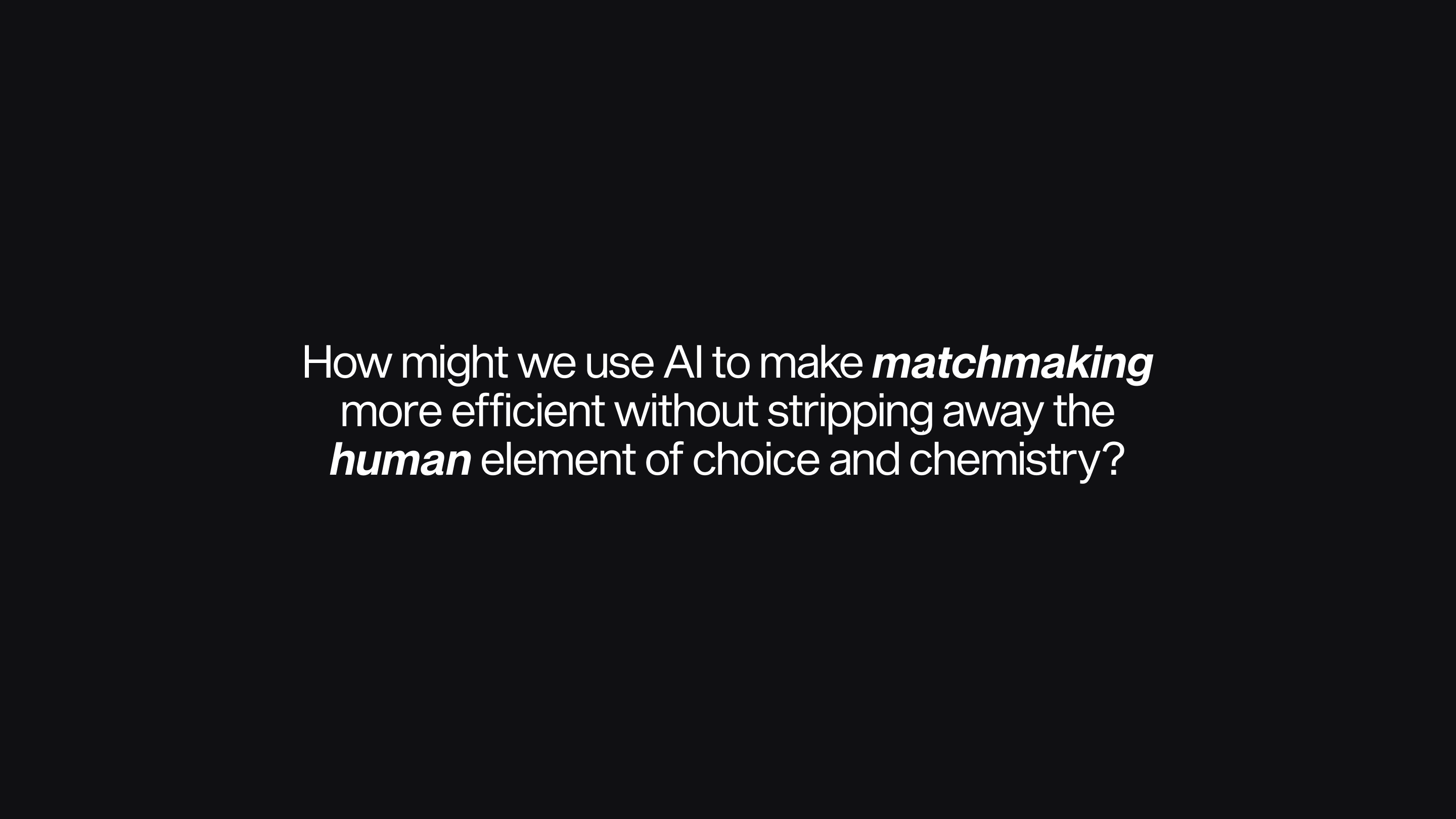 The culmination of my research led me to develop FLAIM, an AI-powered matchmaking tool designed to enhance compatibility testing while preserving user autonomy. The core question driving my project was: How might we use AI to make matchmaking more efficient without stripping away the human element of choice and chemistry?