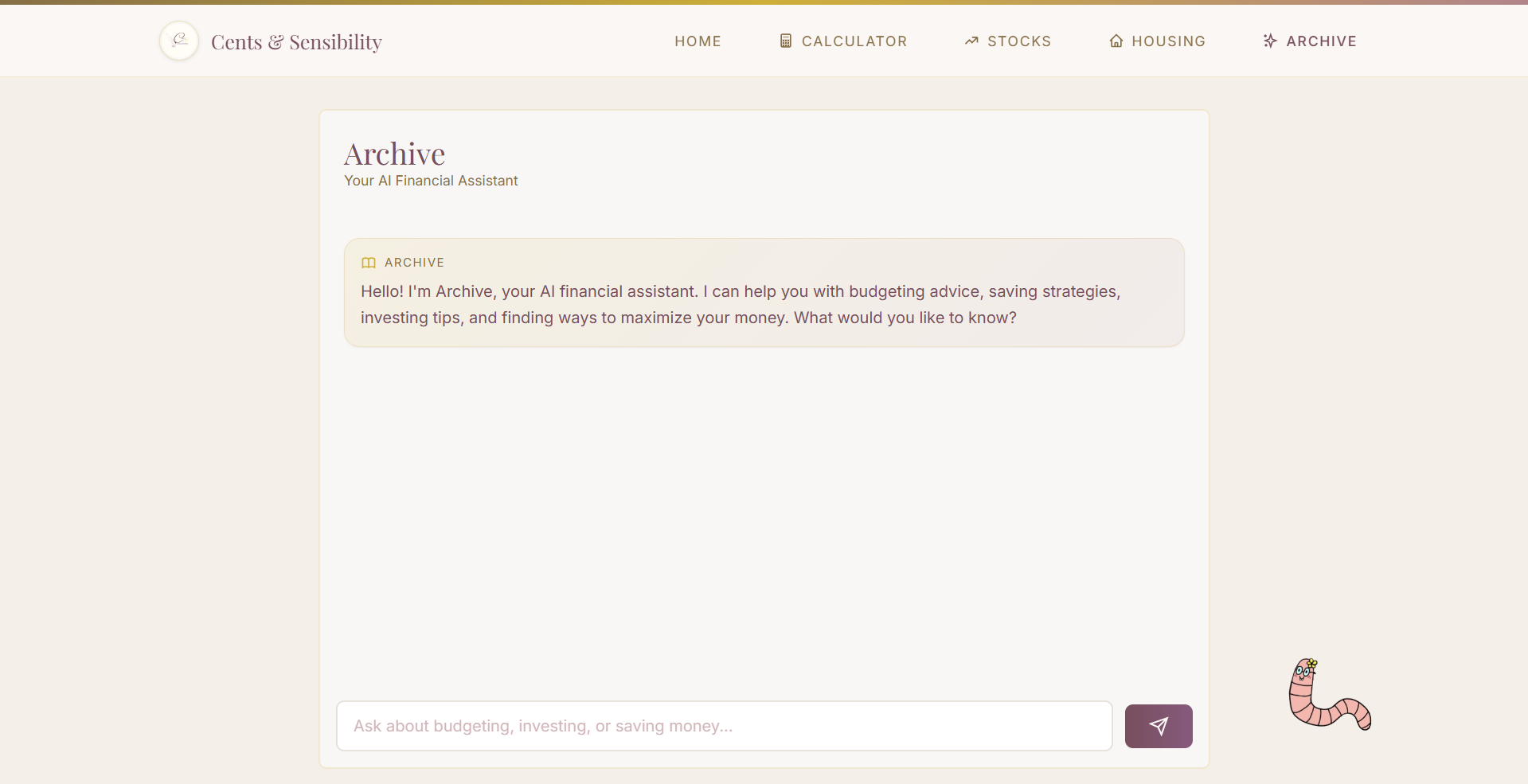 Cents & Sensibility is an AI powered personal finance platform inspired by the Library of Alexandria, reimagined as a modern, living archive of financial intelligence.