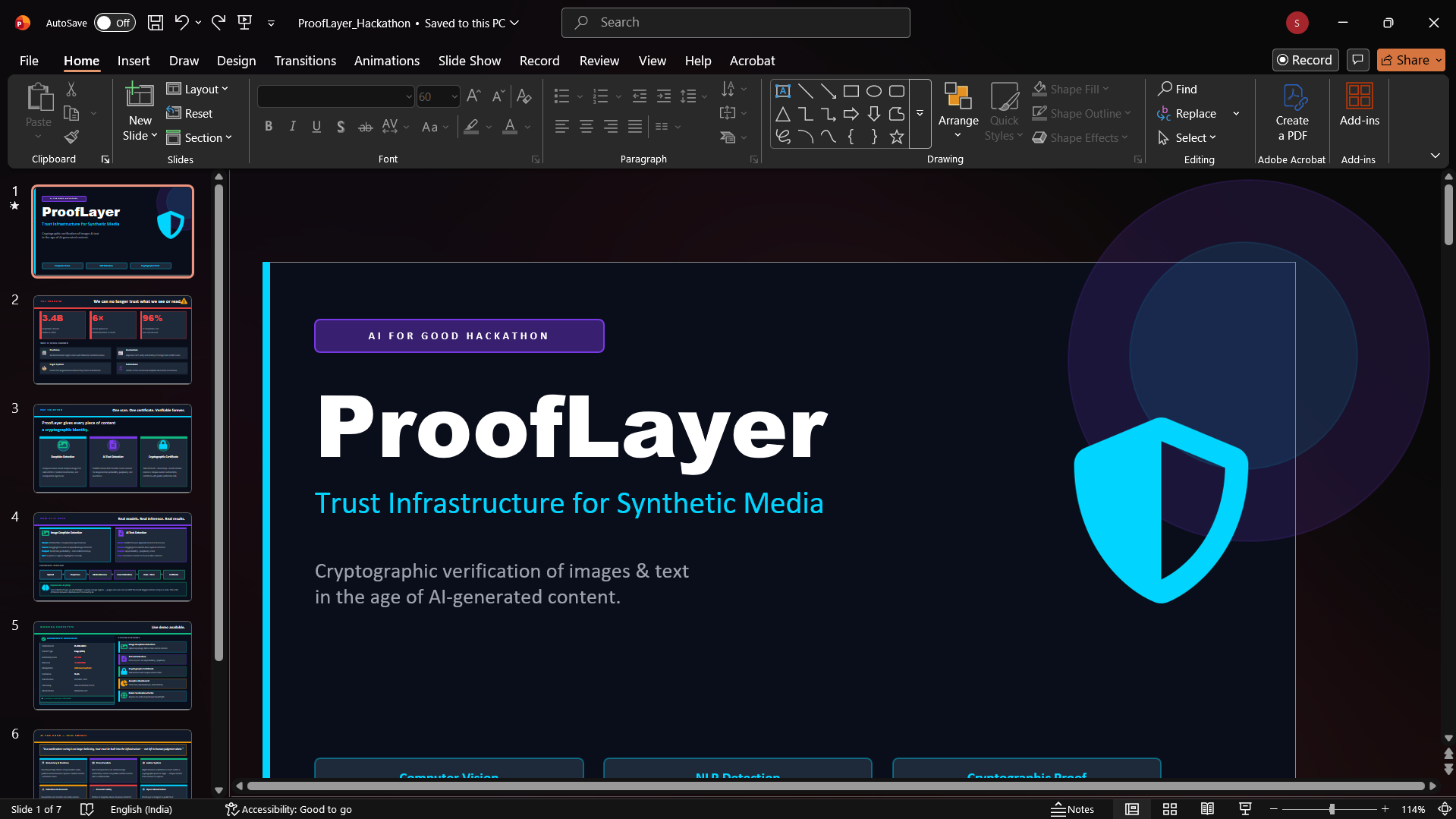 The hardest challenge wasn't technical — it was ethical. What if ProofLayer says something is real, and it's not? What if it says something is fake, and it's real? I had to be very deliberate about framing every result as a probabilistic assessment, not a verdict. The certificate says "Confidence: 91%" — not "This is fake." That distinction matters enormously in high-stakes contexts like journalism or legal proceedings.