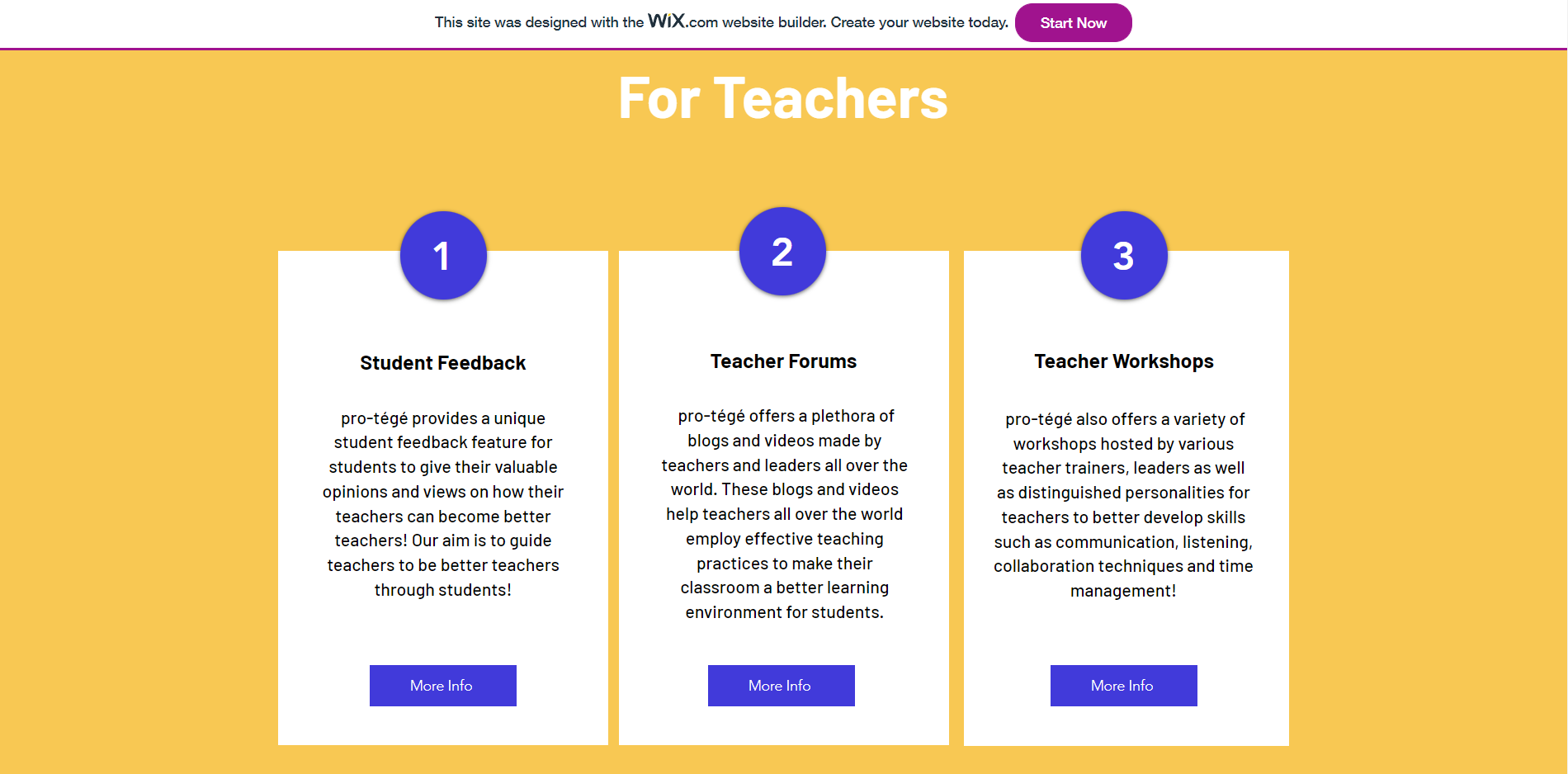 pro-tégé is built to provide effective training to teachers to enhance their teaching abilities by providing constructive criticism from students, connecting them to teacher trainers, experienced leaders, attending workshops, receiving and even teacher development programs! It is an online platform that provides teachers with world class teacher training and skill development opportunities. A user has the options to: