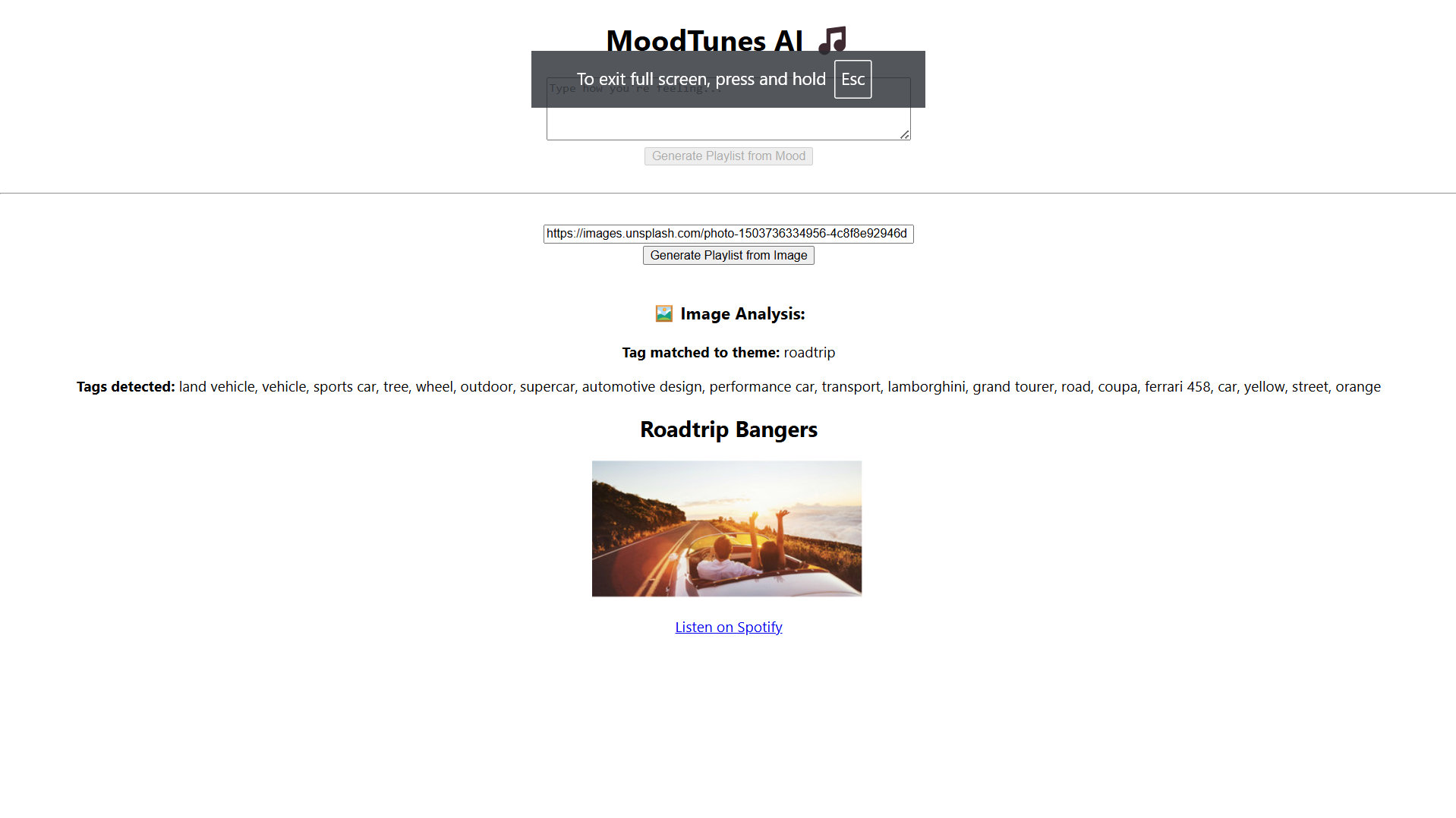 🖼️ Paste an image URL (like a chill photo or a party scene), and get a themed playlist based on visual tags detected.