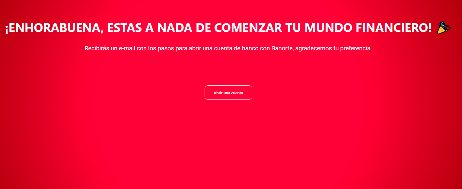 La plataforma web realiza una fuente de impacto de información del banco Banorte para un usuario que posiblemente se hará cliente, para ello se tiene un simple formulario pero recopilar sus datos de forma segura pero más importante, agradándole al usuario.