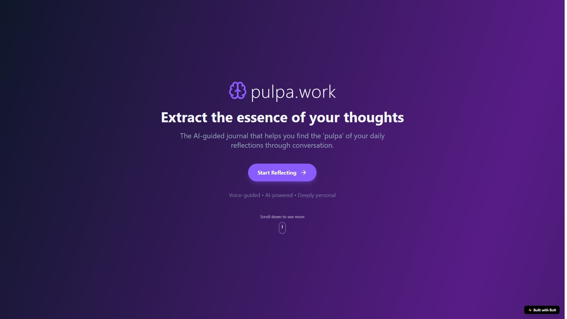 The idea for pulpa.work was born from a personal need: to find a better way to engage in self-reflection. Traditional journaling felt static, and fleeting thoughts were often lost. I envisioned a tool that wasn't just a passive notebook, but an active partner in introspection. Inspired by Stoic philosophy, I imagined an empathetic AI interviewer that could help me converse with my own thoughts, to find the "pulpa"—the true essence and meaning—hidden within them.