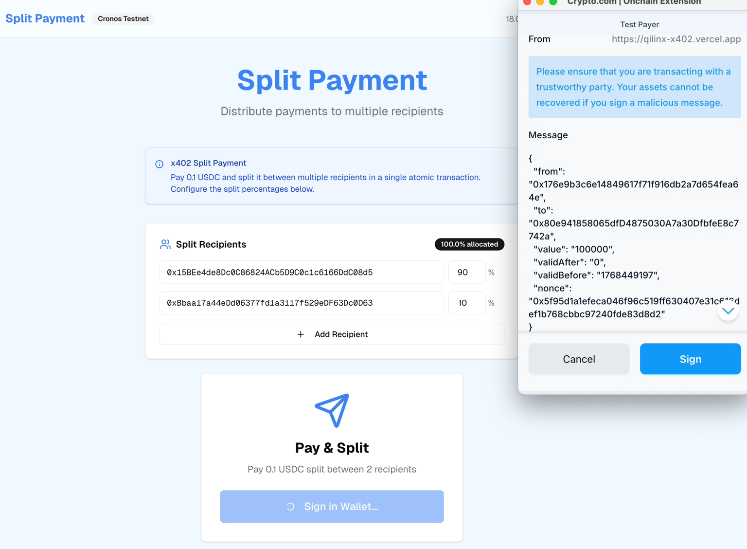 First ever x402 payment A2A discovery and contract builder tool on Cronos