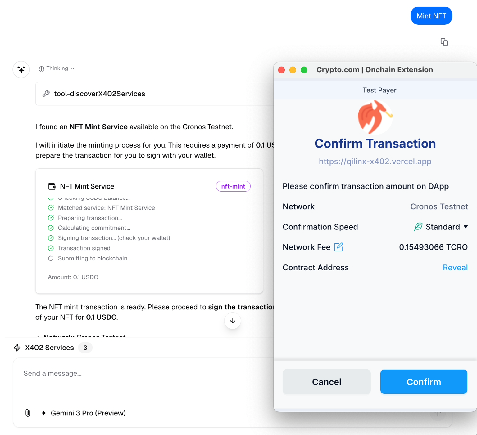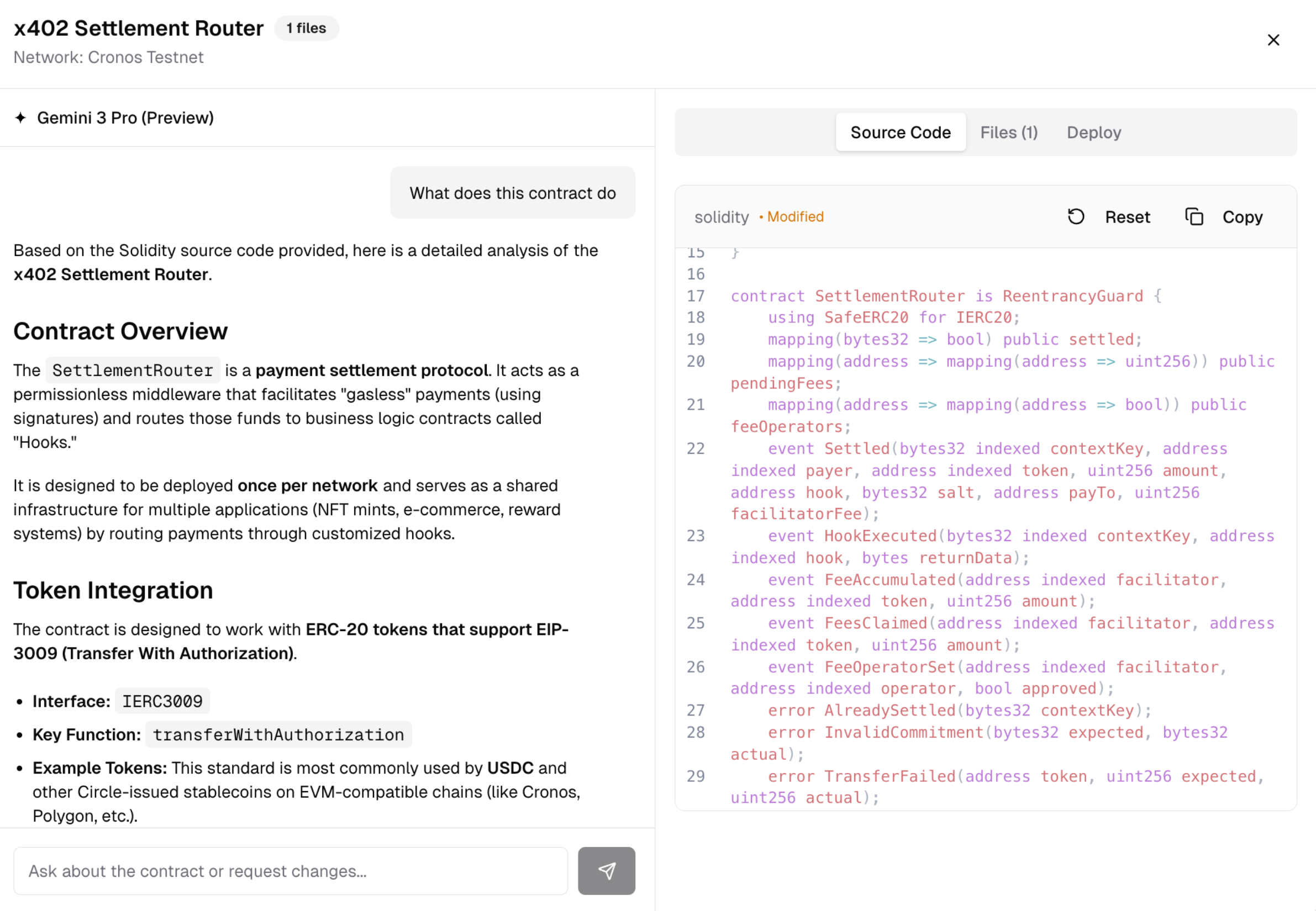 An AI-powered platform for building, testing, and deploying x402 payment solutions on Cronos EVM chain.
