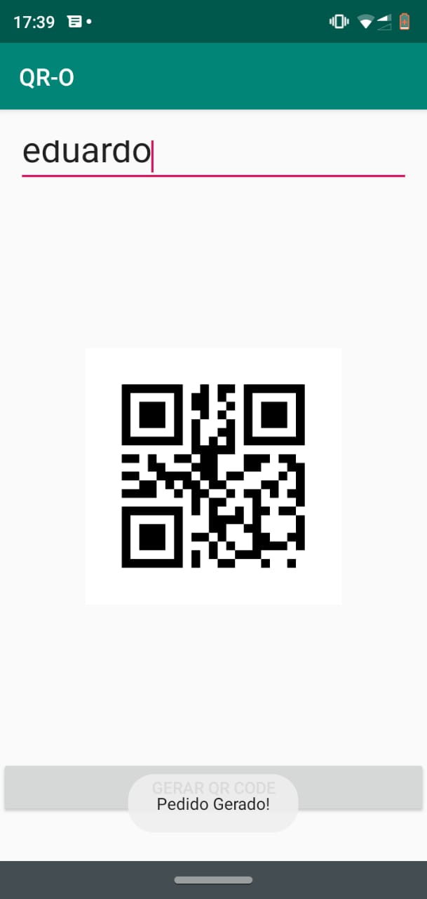 Assim que a ID é informada o código QR é gerado na tela do cliente e este deve ser apresentado ao entregador
