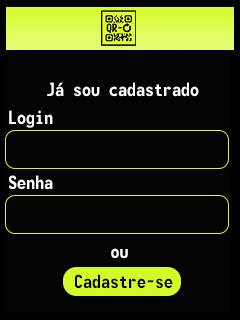 Carregamento do app concluído, aparece a tela onde o usuário se identifica