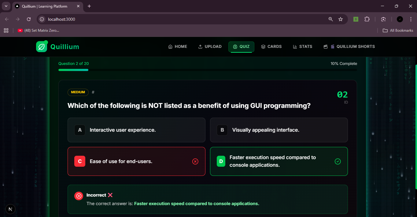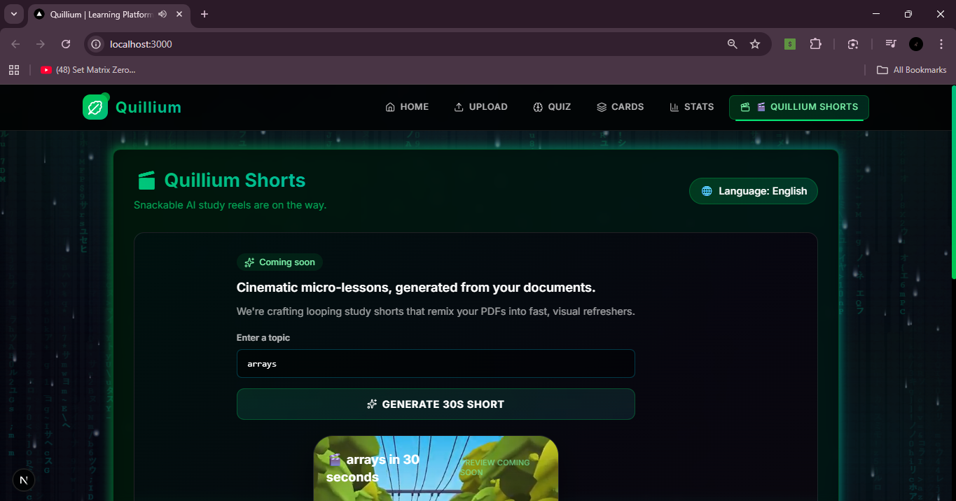 Added a unique Study Shorts feature that differentiates Quillium from traditional study tools